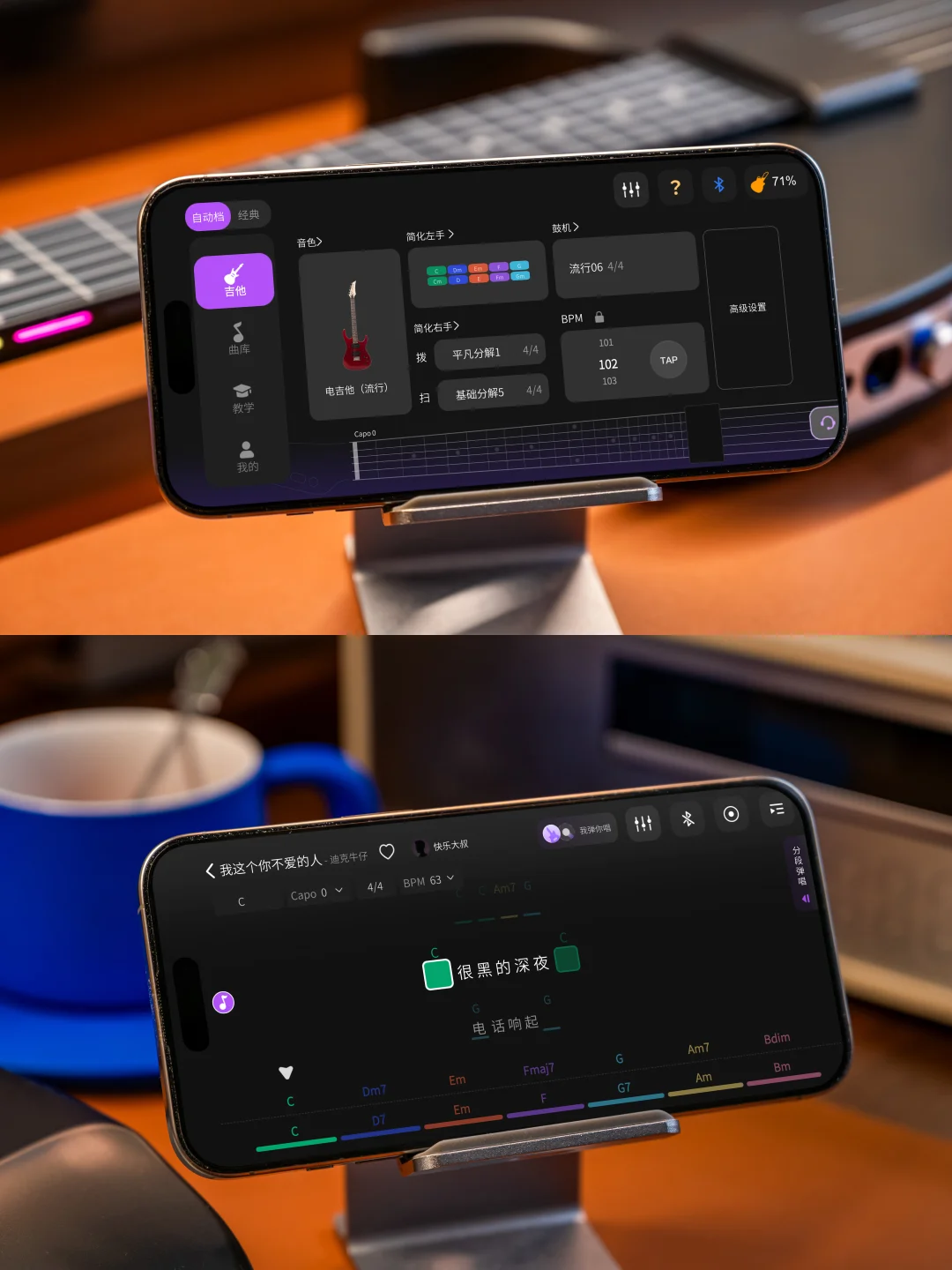 自带的智能APP连接后,一些木吉他做不到的功能它都有,线下课程又贵又麻烦,这个APP直接免费自学,并且还有非常智能的纠错反馈,弹错弹对都会有老师进行反馈