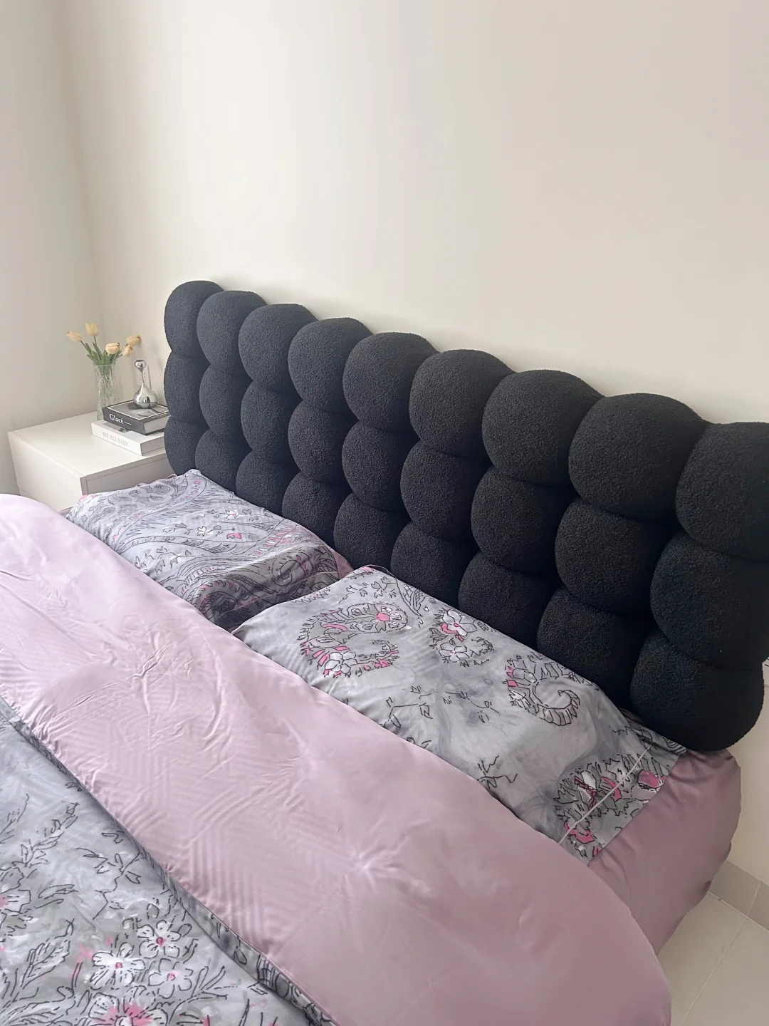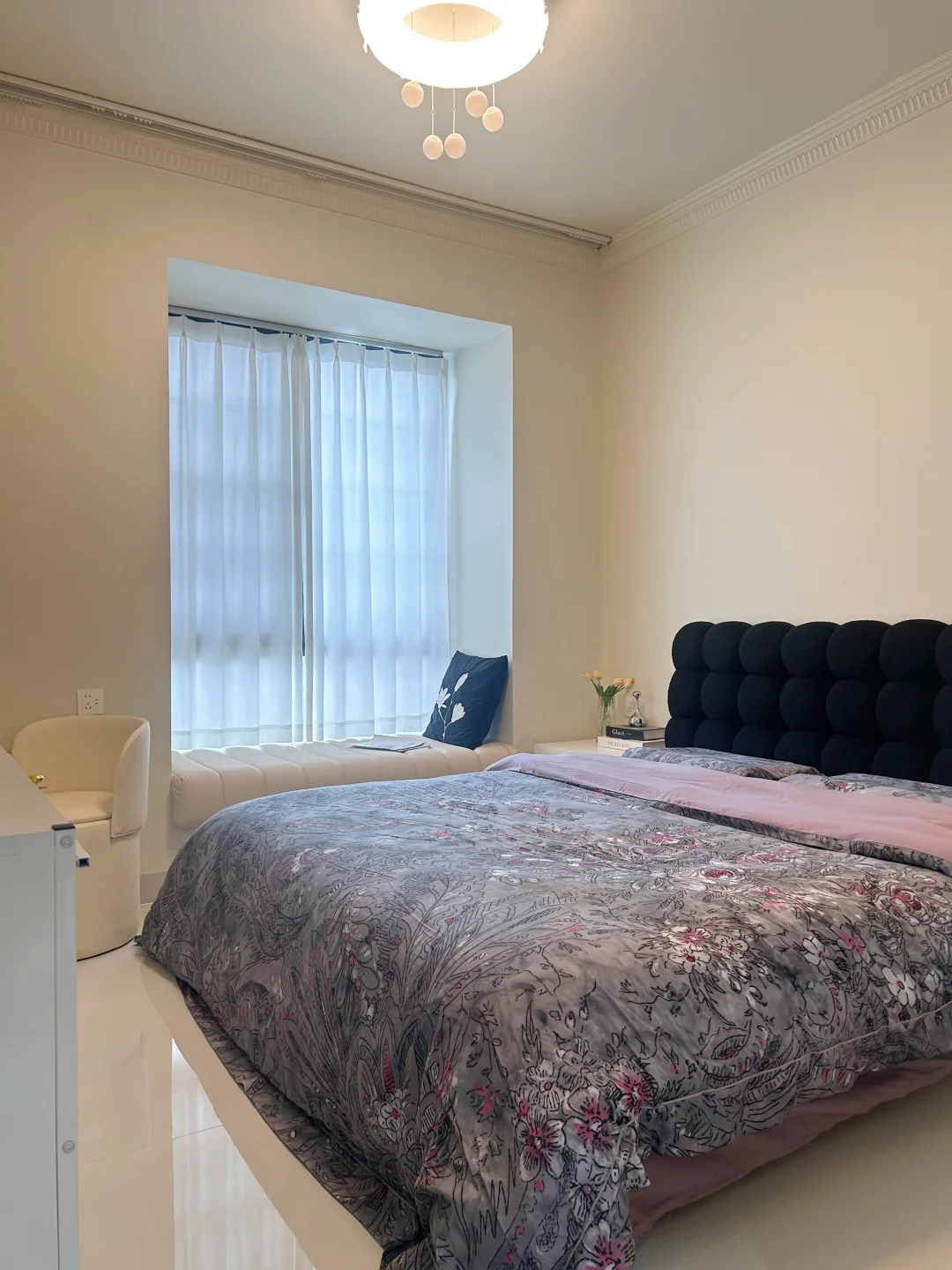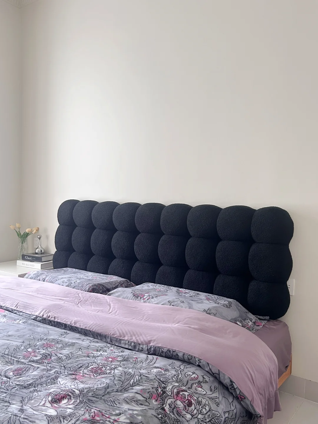 ☀️面积:套内60㎡ 🏡户型:2房2厅1卫 🛌主卧:3m*3m的正方形格局 - 我家的主卧只有别人次卧的大小🙈,为了放下1.8米大床和心心念念的床尾梳妆台,果断放弃繁杂的装修,选择无床头齐边地台床,瞬间节省0.5㎡的空间👏👏搭配软包床头靠垫,糯糯叽叽的,真的太太太舒服了🤩🤩