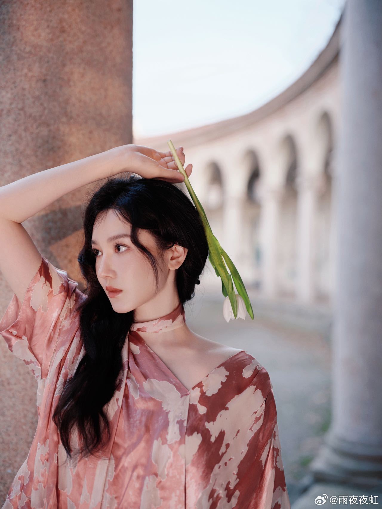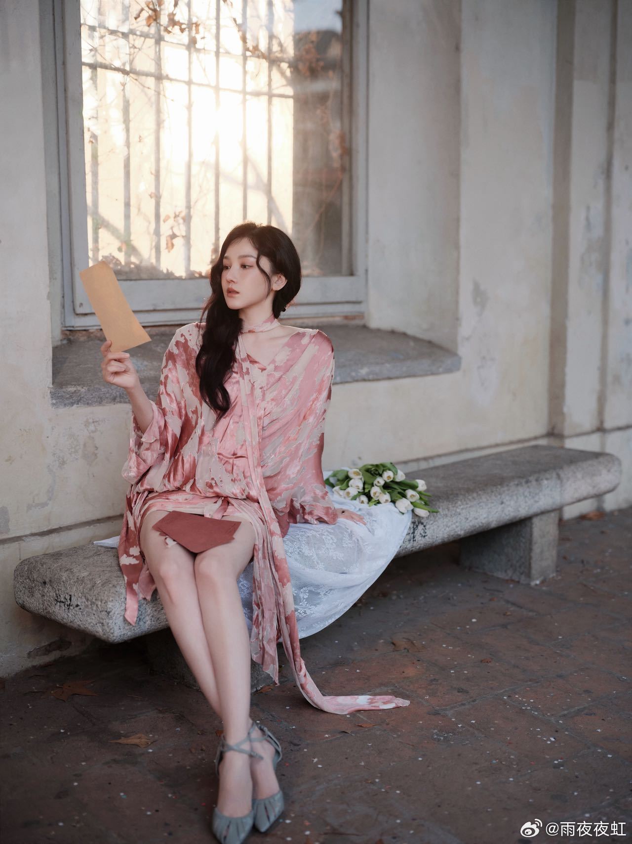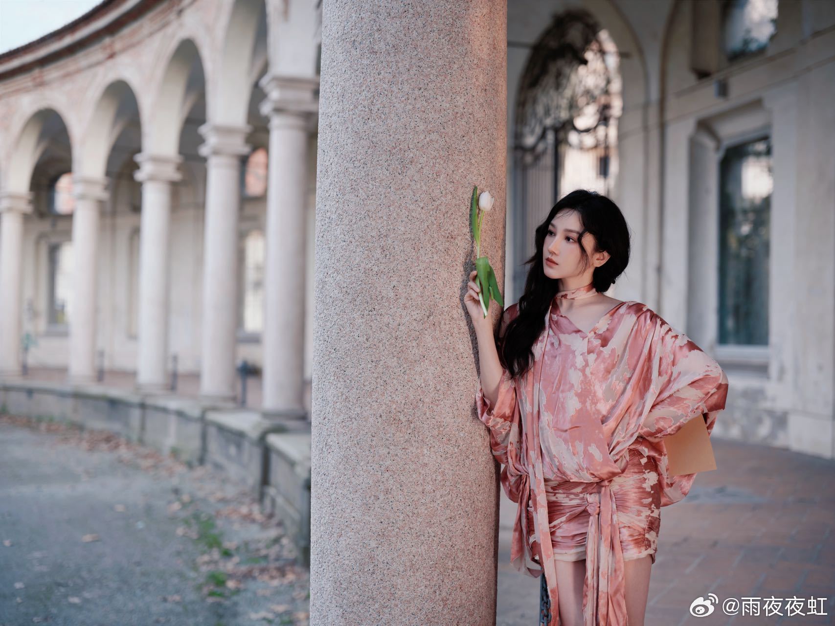 陈小纭米兰时装周首秀 米兰街头的光影落在身上,蕾丝裙摆随风轻扬,温柔里藏着不经意