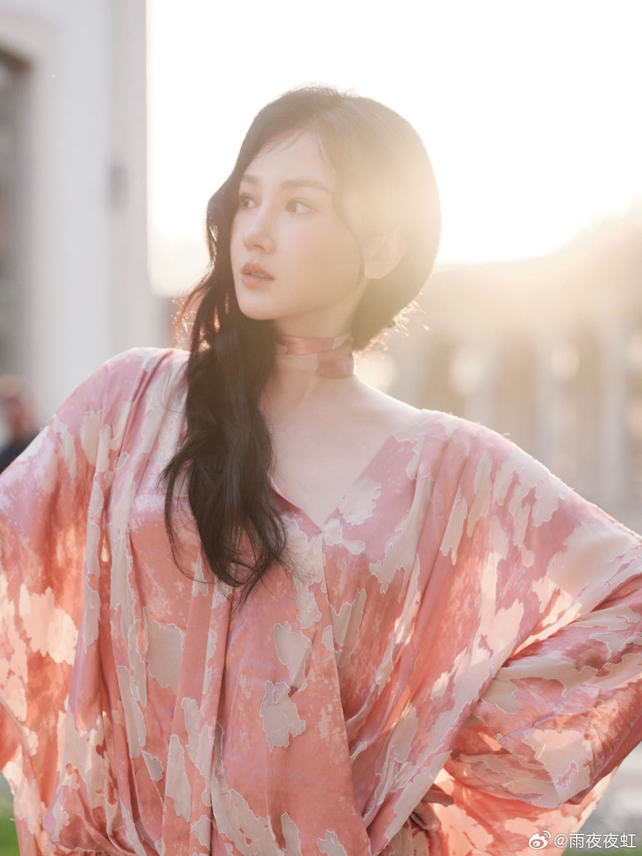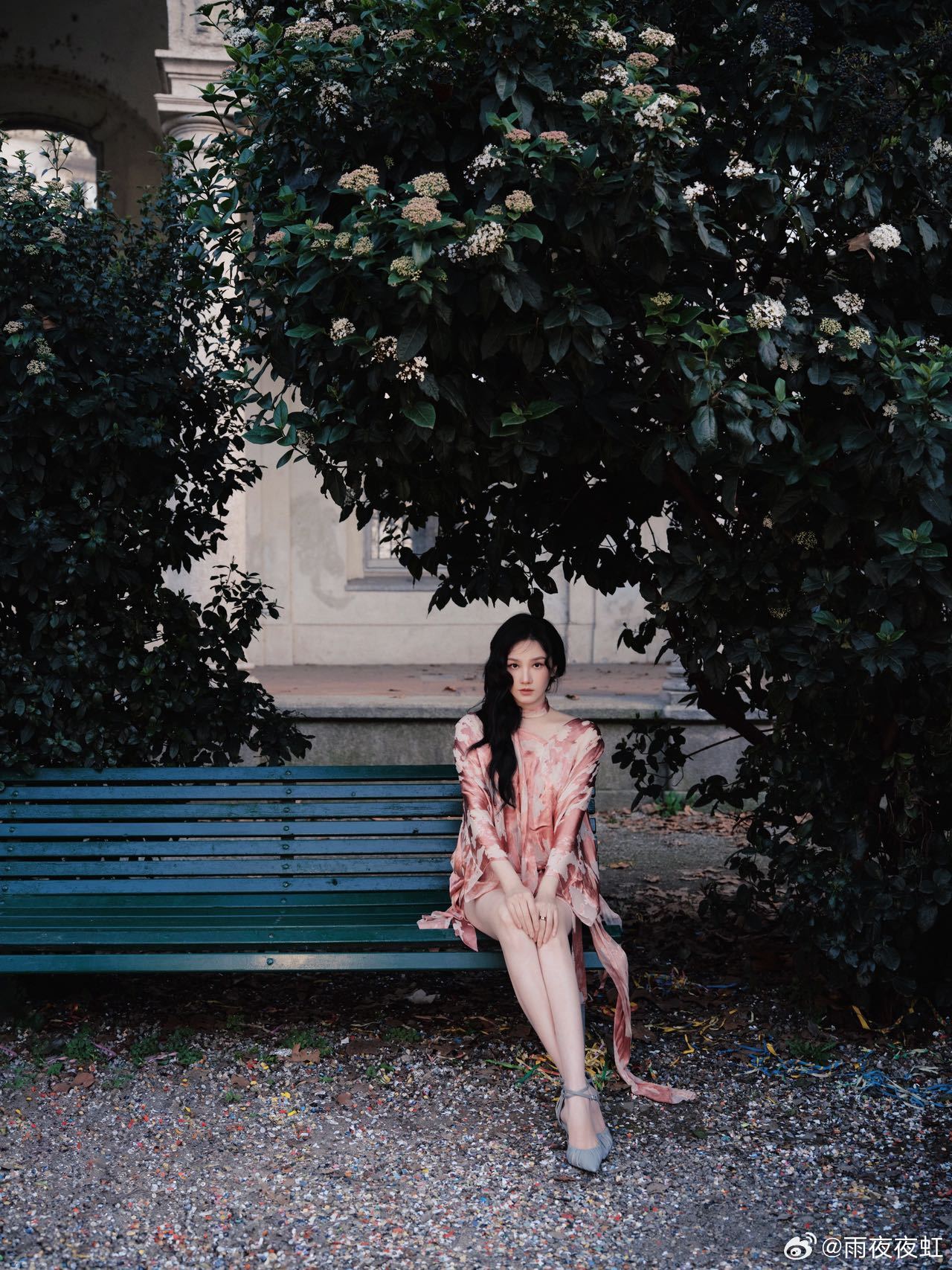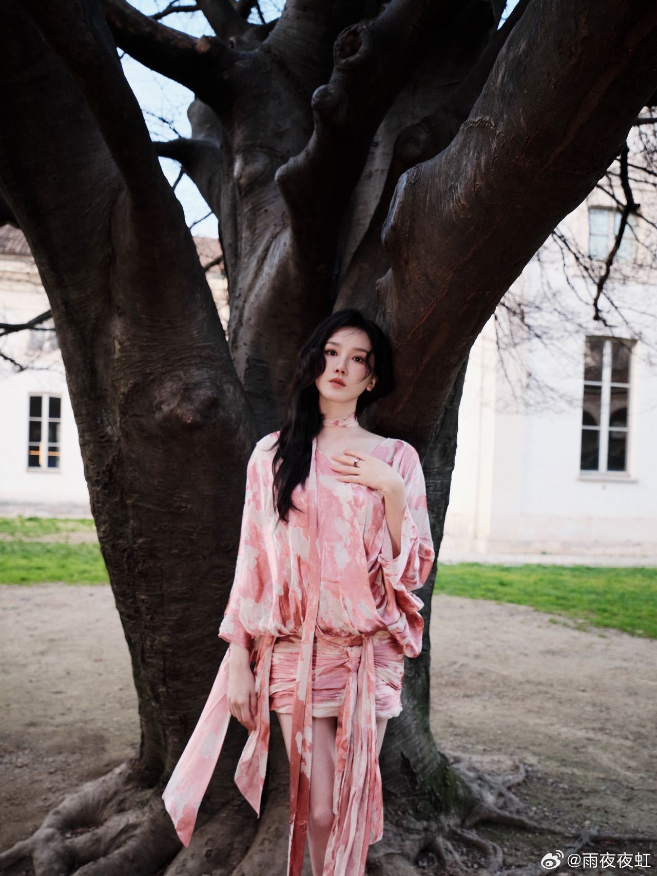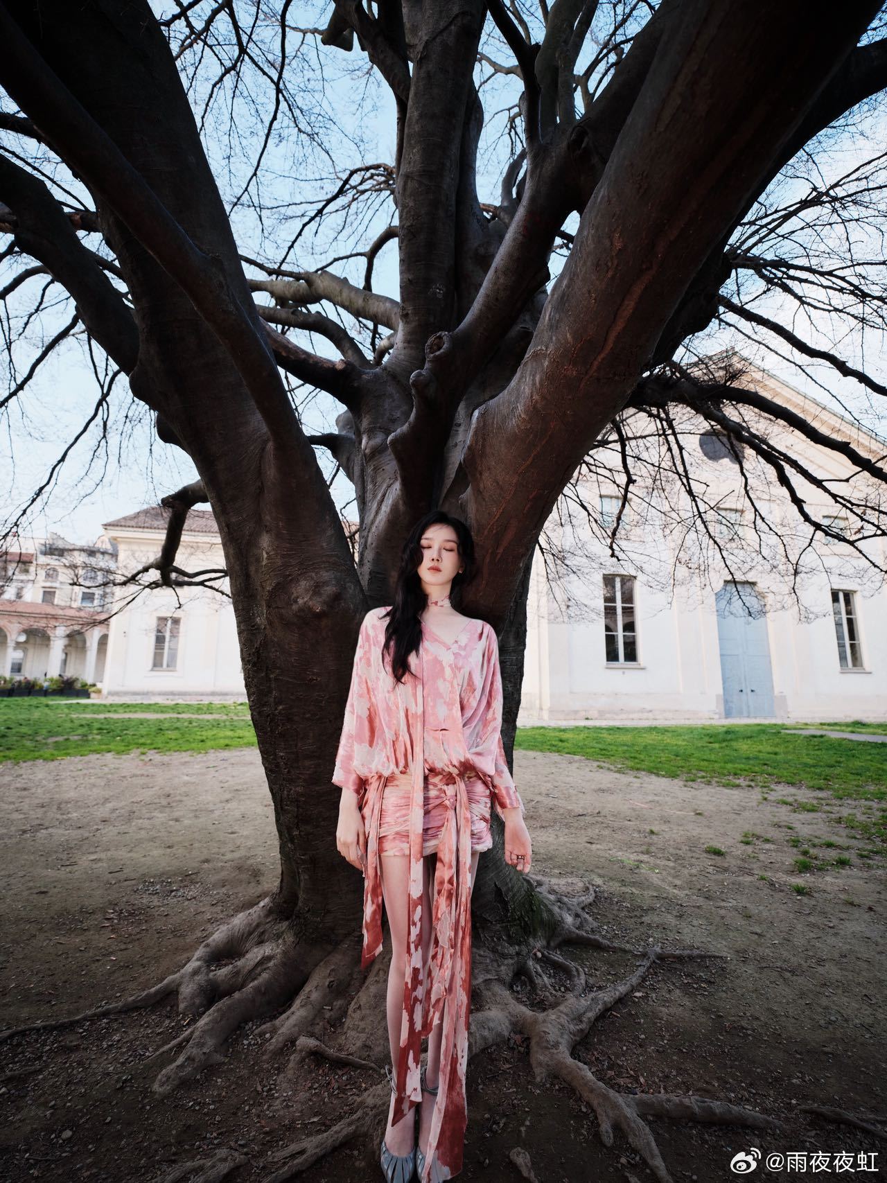 陈小纭米兰时装周首秀 米兰街头的光影落在身上,蕾丝裙摆随风轻扬,温柔里藏着不经意的慵懒,像画报里走出来的东方美人。