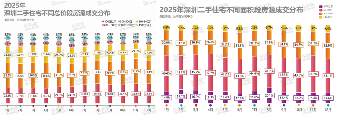 刚需仍是基石:500万以下、90㎡以下的房源占了半数以上。