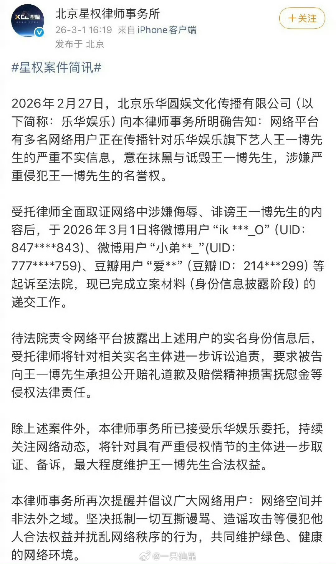 王一博方取证告嘿发布
