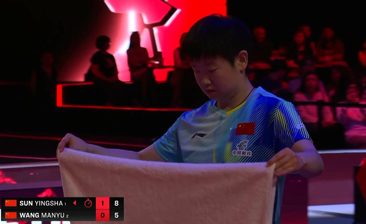 孙颖莎领先为何叫了暂停? 刘国正解释说: 莎莎看到鳗鱼的改变, 想缓一下。 第一局 王曼昱3:0开局, 但是孙颖莎11:8拿下 第二局 开局两人2:2平 然后一个远台对拉, 鳗鱼已经占据近台, 但是反手失误了, 鳗鱼心态有些起伏, 孙颖莎8:2领先, 鳗鱼追到了5:8, 孙颖莎叫了暂停。 回来第一个就是擦边, 接着就是多回合对抗, 王曼昱8:8追平。 鳗鱼两个反手拧拉失误, 莎莎10;8拿到局点, 孙颖莎11;9拿下, 大比分孙颖莎2:0领先