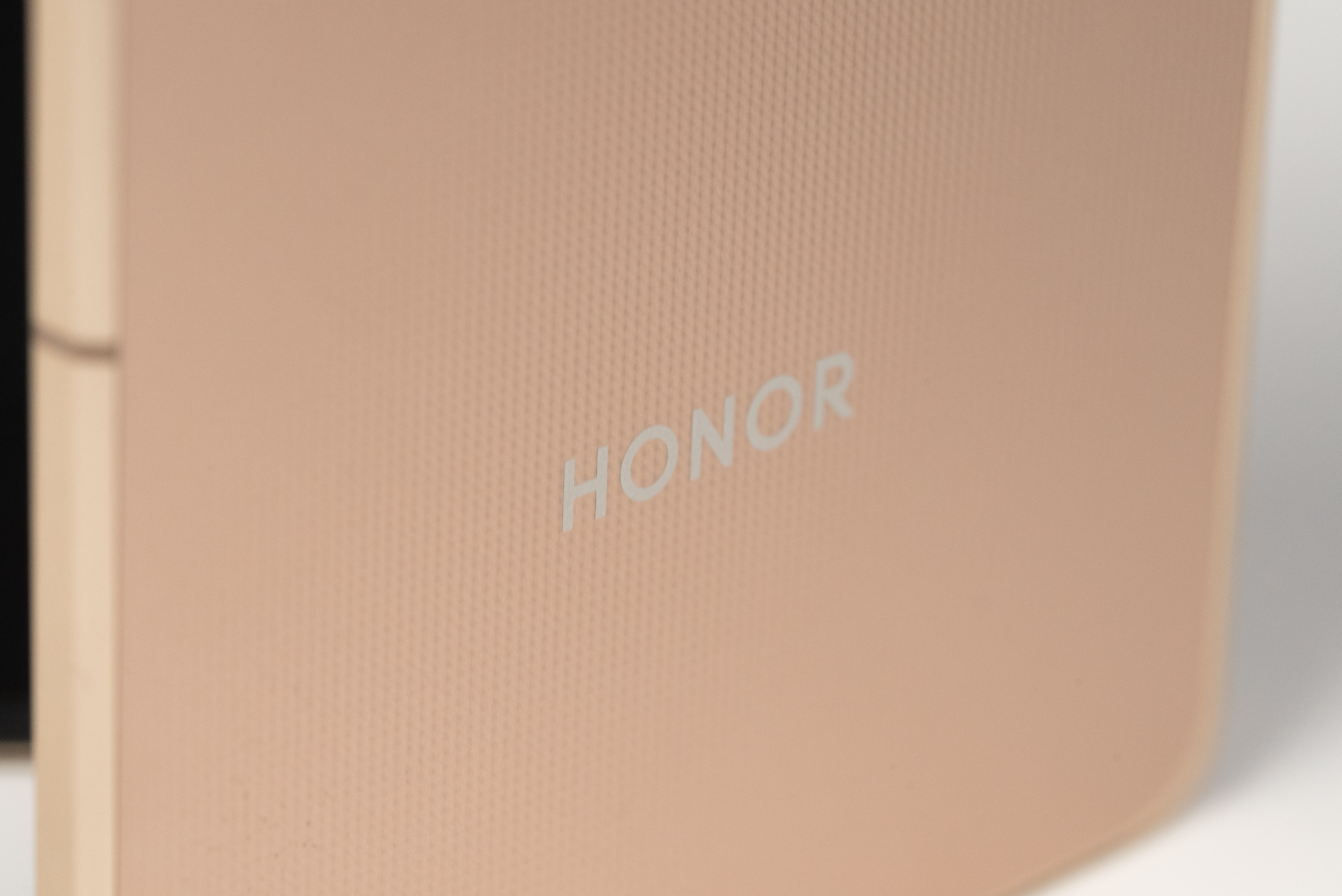 这次 Magic V6 在设计上加入了很多小细节。比如镜头模组上雕刻了很多细小的星轨纹理,转轴盖板上也雕刻出了规则的三角格纹。