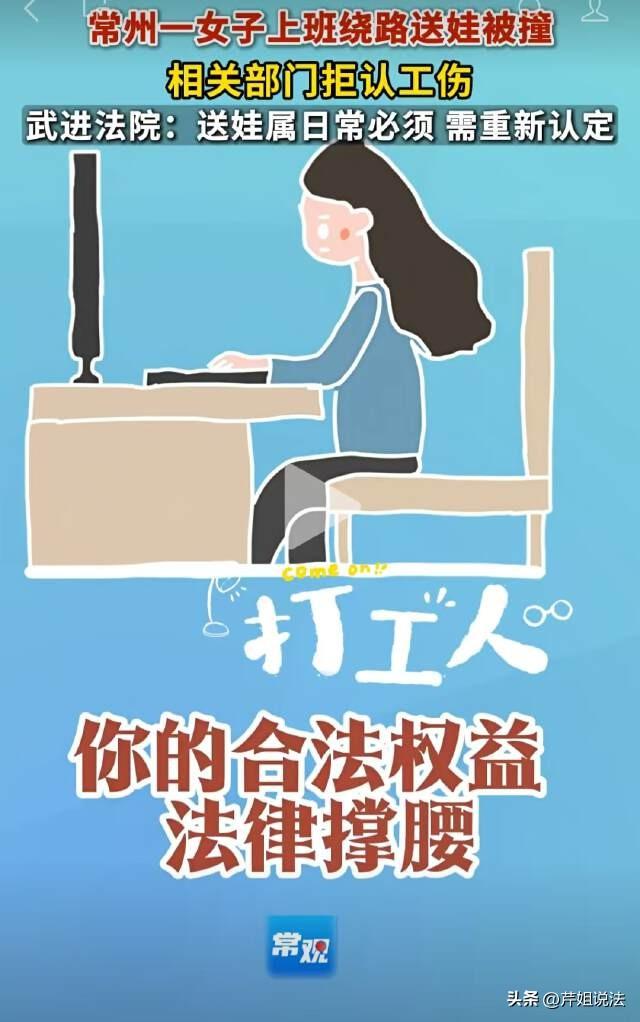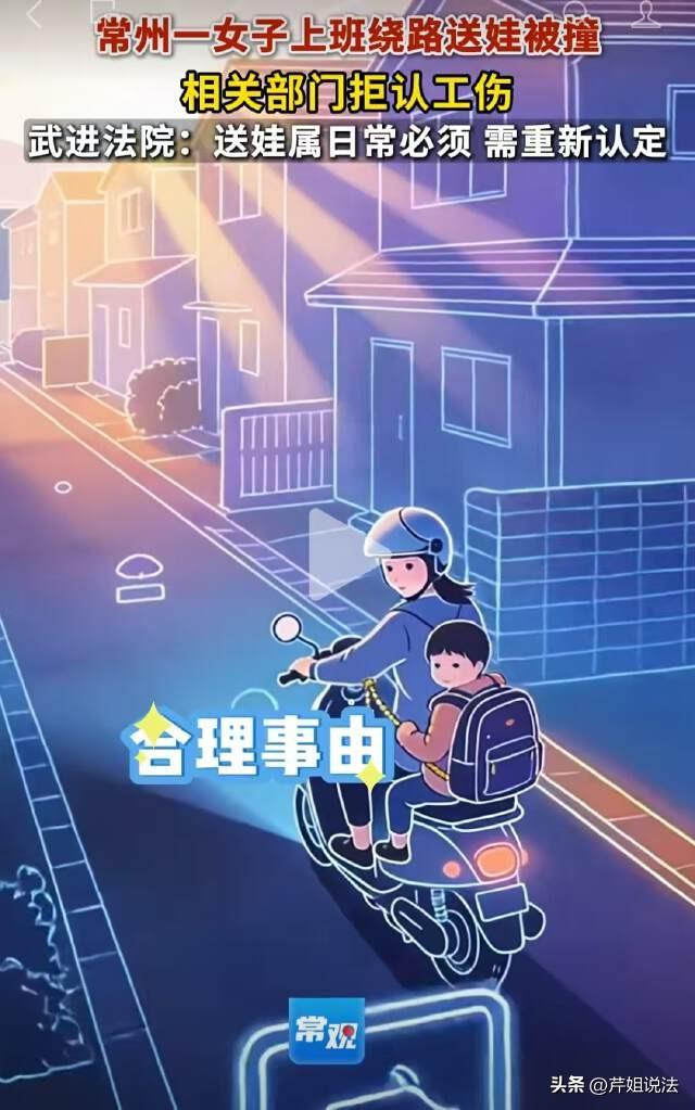 江苏常州,女子驾驶电动自行车送小孩上学,结果与迎面来的小型普通客车发生碰撞,造成交通事故。女子当场受伤,被紧急送医。医院诊断结果为:创伤性脾破裂、左手第四掌骨骨折....事故经交警认定,由客车承担全部责任。就在女子向当地人社局提出工伤认定申请时,人社局却一盆冷水泼下来:你送孩子的路线和上班方向相反,不算工伤! 陈某是江苏常州金坛区某公司的员工,公司要求每天早上7点左右到岗。作为一个单亲妈妈,她每天的生活轨迹都是固定的:先骑电动车送孩子上学,然后再调头去公司上班。 孩子就读的学校位于陈某家东南方向5公里处,单位则在陈某家东北方向4.5公里处,学校与单位之间由一条南北向的主干道连接。 每天,陈某都会先送孩子上学,再从学校前往自己的工作单位,全程用时共约35分钟。 这天,陈某像往常一样骑着电动车,送孩子前往学校。当她骑到金坛区钱资湖大道某中学南门对面非机动车道时,一辆小型普通客车突然撞了上来。 巨大的冲击力把陈某连人带车撞倒在地,她当场昏迷。 被紧急送医后,医生的诊断结果让人揪心:创伤性脾破裂、左手第四掌骨骨折、S5腰骶椎骨骨折,还伴有左肾挫伤和血肿! 好在交警很快出具了事故认定书:小型客车驾驶员杨某承担全部责任,陈某无责。 10月29日,陈某向当地人社局提出工伤认定申请。 陈某心想,自己是在上班途中出的车祸,交警也认定了对方全责,工伤应该是板上钉钉的事。 然而一个月后,人社局的一纸决定书把她的希望浇灭了。 11月29日,人社局作出《不予认定工伤决定书》,理由写得很明确:陈某送孩子上学的路线,与她从家到单位上班的路线是反方向,不符合《工伤保险条例》第十四条、第十五条认定工伤或者视同工伤的情形。 陈某不服该决定,于是依法向法院提起诉讼。 法院经审理认为,“上下班途中”原则上是指职工为了上下班而往返于住处和工作单位之间的合理路线,根据日常生活的实际情况,职工上下班的路线并非固定的、一成不变的、唯一的,而是存在多种选择。 陈某发生事故的时间为上班的合理时间范围内,送小孩上学的路线虽然与她从家到单位上班的路线相反,增加了通勤路程时间,但仍然是在规定的上班时间内准点到达。 最终,法院撤销了人社局作出的《不予认定工伤决定书》,限期人社局对该工伤认定申请重新作出处理。 正当陈某满怀欣喜的认为自己的工伤申请终于能通过了的时候,陈某所在公司不服一审判决,上诉至常州市中级人民法院。 公司提起上诉的理由听起来也很有道理: 陈某送小孩上学的路线应当以顺路为原则,可是她送小孩上学的路线和她从家到单位的路线完全是反方向的,虽然最终仍然在规定上班时间内到达公司,但是这一行为大大增加了上下班路的风险。 所以不能认定为合理路线,人社局的不予认定决定是正确的! 常州市中级人民法院审理后,给出了一个让无数职场父母心里一热的判决。 在日常司法实践中,人民法院对行政机关作出的通勤事故类工伤认定进行合法性审查时,通常会围绕合理事由、合理时间、合理路线三个要素进行综合判断。 简单来说,合理事由就是是否以上下班为目的;合理时间就是上下班时间是否合理;合理路线就是往返于工作地和居住地的路线是否合理。 这三个要素,陈某显然全都符合。 首先,她是在上班途中发生的车祸,目的是去上班,这一点没问题。其次,事故发生时间是早上6点38分,公司要求7点到岗,时间也在合理范围内。最关键的是第三条—路线问题。 陈某在上班途中接送孩子上学,属于“从事日常工作生活所需要的活动”。虽然这条路线与她直接从家到单位的方向相反,但这是她每天必须做的事情,是她作为一个母亲无法绕开的责任。 只要没有严重偏离上班目的,没有明显增加通勤时间和风险,就应当认定为合理路线。 2026年2月,常州市中级人民法院作出二审判决:驳回上诉,维持原判—撤销人社局的决定,责令人社局重新作出工伤认定。 对此,您怎么看?欢迎留言交流。