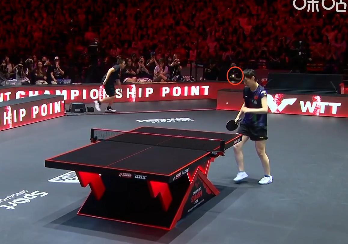 刘国正解说完,长松一口气,终于解释完了,直呼心脏受不了。 前五局 孙颖莎3:2领先。 第六局 两人开局胶着, 鳗鱼球衣脱线了, 裁判一烧解决, 回来之后莎莎连赢, 孙颖莎中局9:3领先。 有些松, 鳗鱼追到了7:9。 孙颖莎10:7拿到赛点, 鳗鱼追到9:10. 孙颖莎11:9拿下。 孙颖莎4:2战胜鳗鱼。