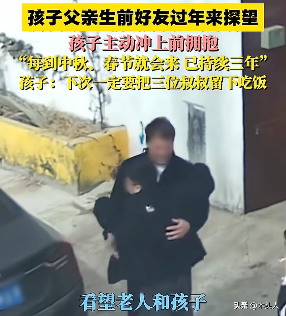 泪目了!江苏,丈夫去世后,女子带着孩子和老人一起生活。丈夫生前的3个好友,无论多忙,春节和中秋等节日都会来他们家,看望孩子和老人,每次饭都来不及吃,聊会天,就匆匆回去了。女子:他们都是孩子爸爸生前的好兄弟,家里遇到困难,他们也总是第一时间伸出援手。朋友走后,儿子的一句话,让女子感慨万千。 2月22日上午10点多,女子带着儿子匆匆往家里赶,远远地,她看到自己家门口停着一辆车。 男孩小跑上前,和车旁的男子一一拥抱,满脸欢喜。 女子也匆忙走到了家门口,拿出钥匙,把大门打开,迎接客人进门。 这3个远道而来的客人,是女子丈夫生前的好兄弟,丈夫去世后,他们并未疏远女子家,而是在他们有困难时,总会第一时间伸出援手。 每年的春节、中秋,他们都会带着红包和礼物来探望老人和孩子。 因为工作缘故,他们每次过来,饭都来不及吃,聊会天,就匆忙回去了。 这三位好兄弟,已经连续3年春节来女子家拜年了。 这一次也不例外,他们一起聊会天,问问彼此近况,看到大家一切就好,就准备起身回去了,女子和孩子想留他们吃饭,可对方却称赶时间,下次再吃。 客人走后,男孩跟女子说:妈妈,下次一定要把这些伯伯们留下一起吃饭。 女子瞬间红了眼眶,感觉孩子长大了,像个小大人似的。 她心中感慨万千:这么有情有义的好兄弟,煽情的话自己也不会说,唯一能做的就是帮丈夫,把这份兄弟情谊维持下去,希望所有人都可以平安健康,幸福美满。 女子把视频发在网上后,引发了网友讨论。 有人说:这才是真兄弟,不是亲兄弟,胜过亲兄弟,很多亲兄弟都做不到这样。 这也说明你老公本身也是很好的人,现在这个年代还能有这样的友谊真不容易,把这份爱传下去。 狐朋狗友再多,也不如一个真心兄弟,像我老公那么多朋友,去医院看他的,就那么一两个。 也有人说:不是不吃饭,应该是不想麻烦你们,这说明你也很好,是一位通情达理的好媳妇,不然再铁的哥们也维持不了这么美好的关系。 这3位好兄弟的举动让人感动,朋友离世,他们并没有疏远朋友一家,而是经常去探望老人孩子,给予他们帮助。 真正的友谊不会因为生死而消逝,也不会因为距离而疏远。 他们给予这个家庭的不仅仅是物质上的帮助,更是精神上的慰藉,让老人和孩子在失去亲人的痛苦中,感受到了温暖和关爱。 法律并没有明确规定朋友之间必须履行这样的义务,但他们的行为符合善良风俗。 《民法典》第8条规定:民事主体从事民事活动,不得违反法律,不得违背公序良俗。 真正的朋友情谊,在患难时尤其显得珍贵。 愿我们都能珍惜身边的真心朋友,在落难时,有人帮;在朋友需要帮忙时,也能雪中送炭,让爱和温暖永远传递下去。 关注@木头人 ,从法律角度看世界,感受不一样的人情冷暖。