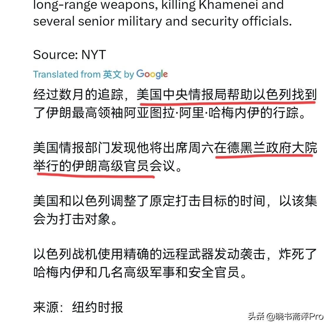 哈梅内伊死亡的细节曝光了!果然被美国CIA掌握了重要情报!3月1日,根据纽约时报报道,美媒称,美国CIA在对伊朗最高领袖哈梅内伊的行踪追踪数月后,帮助以色列找到了他的位置。美国情报部门发现,他将参加星期六在德黑兰一个政府大院举行的伊朗高级官员会议。 而在掌握这一重要情报之后,美国和以色列调整了袭击计划的时间,随后,以色列飞机使用精确的远程武器发动了袭击,炸死了哈梅内伊和几名高级军事和安全官员。很显然,根据美媒这一报告来看,美国CIA无疑掌握了哈梅内伊的绝密情报。其一是,美国拿到了哈梅内伊的活动日程表。 其二,美国方面对于哈梅内伊的活动场所了如指掌。问题就在于,美国是如何获取这些情报的呢?按理说,哈梅内伊的活动只有极少数人知道,若非美国在伊朗高层领导人身边安插了眼线,获得这样的情报,几乎不可想象。CIA能精准拿到最高领袖的行程、会场、时间,绝非普通监听或卫星侦察能做到。 这必然是高层身边有人长期泄密,甚至是权力链条上的关键人物充当内应。从谍报的角度而言,美国CIA的专业性以及以色列的精准击杀,可以说无可挑剔。而伊朗想要构筑严密的安全网络,从高层身边的贴身幕僚到安保指挥官,从会议组织者到通讯操作人员,每一个知情人都应该被彻底审查,坚决的把内鬼揪出来。否则,伊朗还将为此付出更大的代价。
