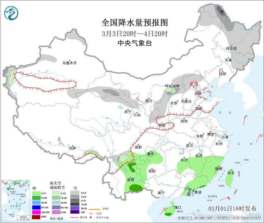 今晚到明天,降雨随着低涡切变线系统,东移南压。广西东部、广东中北部等地局部地区有暴雨(50~70毫米),并且还可能伴随短时强降雨。
