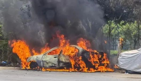 近日某地惊险一幕刷屏。一辆汽车行驶中突然起火,烈焰狂喷如巨龙吐火,车尾拖着长长火尾一路狂奔,宛如失控的“火车”。路人纷纷避让,场面惊心动魄。具体起火原因仍在调查中,所幸暂无人员伤亡报告,详情待官方通报。