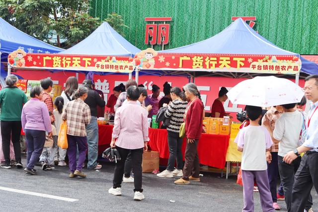 表演结束后,新溪、平台、古勉麒麟白马队、舞龙队醒狮队等巡游队伍浩浩荡荡出发。队伍所到之处,村民夹道欢呼,游客纷纷举起手机记录这热闹场景。巡游路线沿途设置的“广货展销区”同样人气爆棚,既有郁南无核黄皮的加工产品,也有鸡、酒、米、豆等平台特色农产品整齐陈列,其中平台砂糖橘更因皮薄肉甜、汁多化渣深受热捧,许多外地游客专程前来参加民俗活动,只为将这份“甜蜜”带回家分享给家人。