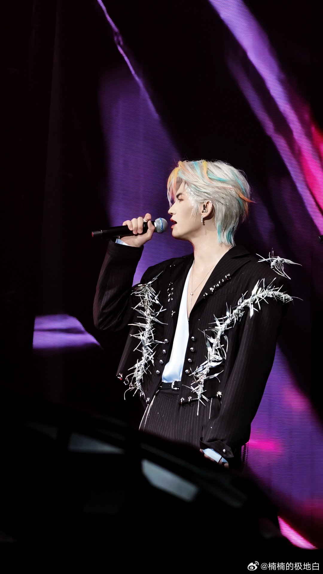 云旗倒V开背荆棘西装 演唱会造型封神!倒V开背露线条高级撩心,荆棘元素添野性,银色细节闪得刚好,利落剪裁显气场,野性荷尔蒙帅到犯规✨