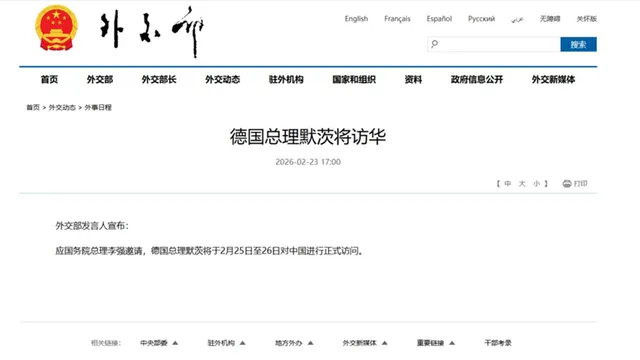 等到中方的官宣行程安排,德方连夜安排行程细节,确保访华万无一失。春节假期的最后一天,外交部发言人宣布,2月25日至26日德国总理默茨进行他任期内的首次访华,德方心心念念了很久的访华行程,终于有了回应。