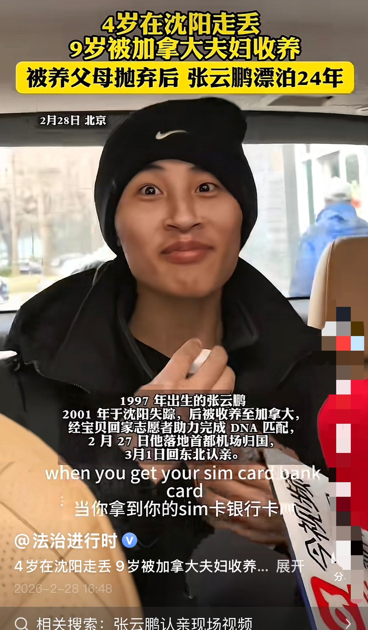 父亲该有多心疼! 29岁张云鹏漂泊25年终于回家,这一幕看哭无数人。 4岁走失,9岁被带去加拿大,刚看到希望就被养父母弃养,在异国独自熬了十几年。靠着好心人的帮助,他跨越万里回到祖国,和亲生父亲相认。 父亲生活不宽裕,还是转来一万元红包,这是他能给的全部疼爱。 云鹏没乱花,全都买了大白兔奶糖、糖葫芦,一口咬下去,是刻在骨子里的童年味道,也是迟到半生的归属感。 真正的亲情从不是大富大贵,而是失散多年,血脉依旧相连,父爱从未缺席。吃过的所有苦,都会变成往后日子里的甜。 愿他从此被温柔包围,再也不用颠沛流离。