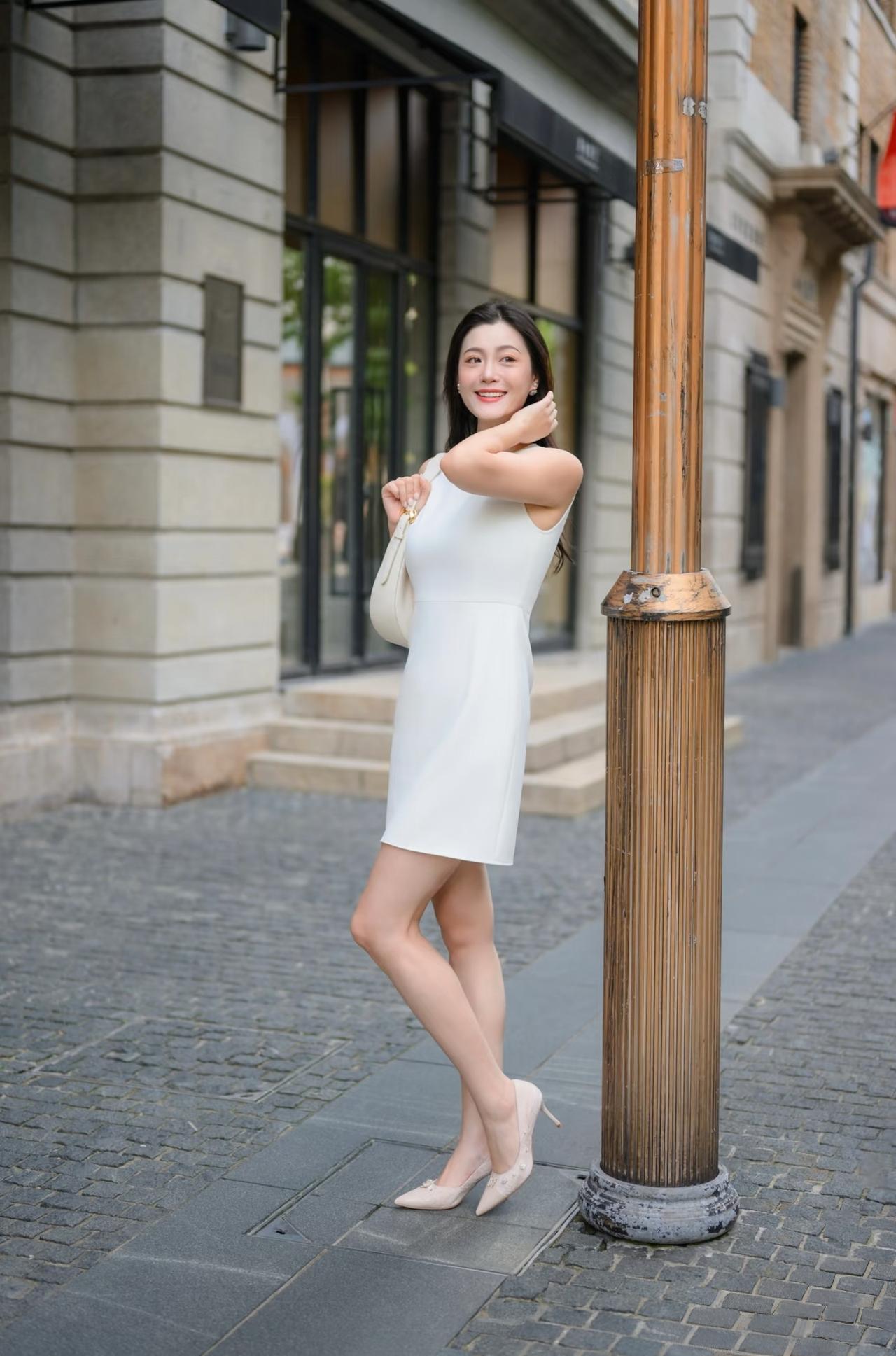 女生如何穿搭看起来时尚更有品味呢一件短款外套,一条白色无袖连衣裙,就可以展现女性清新脱俗的美。