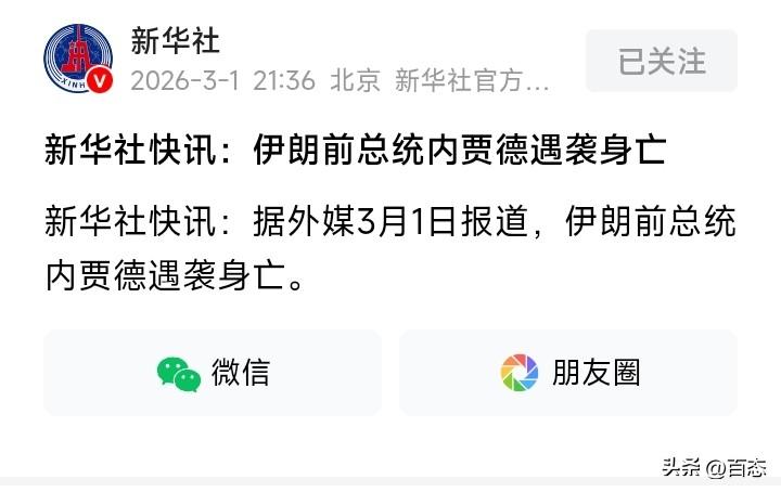伊朗前总统内贾德遇袭身亡,没想到没有实权的前总统还要遭到袭击,以色列和美国这是一个都不放过啊?大家都知道内贾德是强硬派,又是前总统,影响力还是很大的,以色列对于强硬派肯定是恨之入骨。 说实话,伊朗不是小国家,我相信就算政府投降,老百姓都不会答应,我相信伊朗会有千千万万个内贾德,伊朗是吓不倒的,这样只会给局势带来升级。 你们怎么看以色列和美国的疯狂举动?