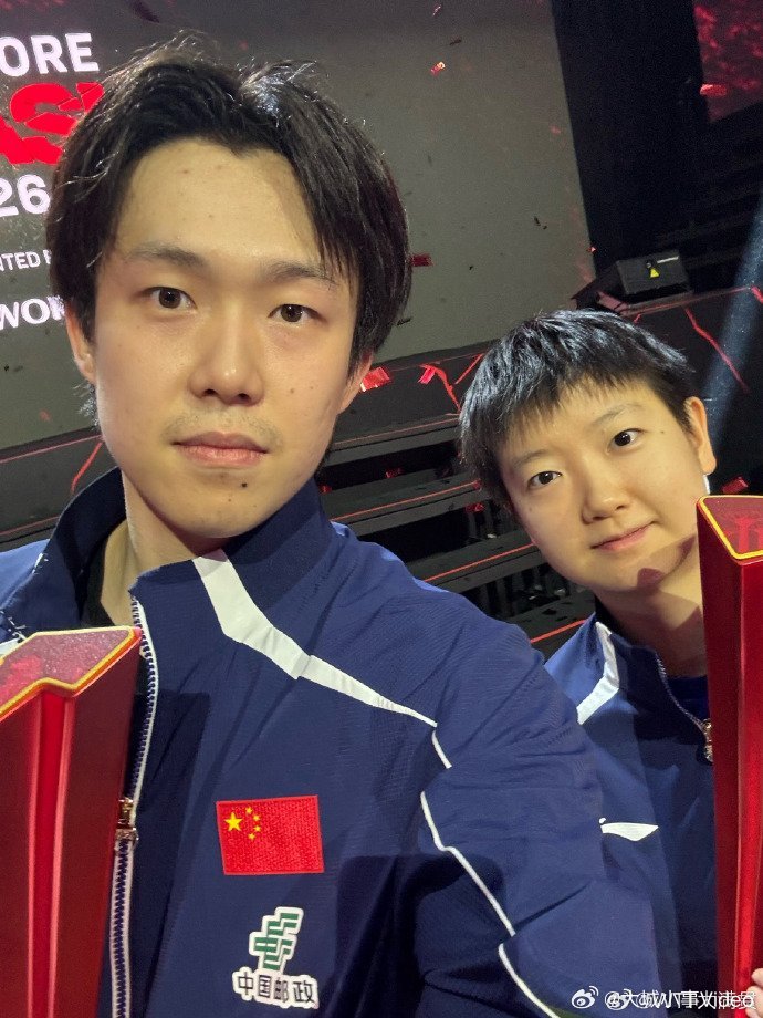 【王楚钦孙颖莎自拍来了】王楚钦孙颖莎冠军自拍出炉 3月1日,在2026年WTT新加坡大满贯决赛中,分别夺得男单女单冠军,随后两位冠军赛后自拍。 世界乒联恭喜王楚钦 林昀儒 (WTT大满贯)