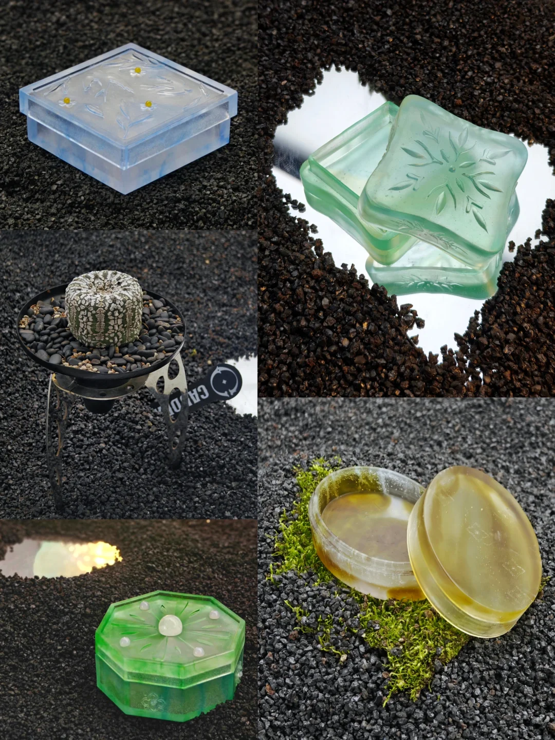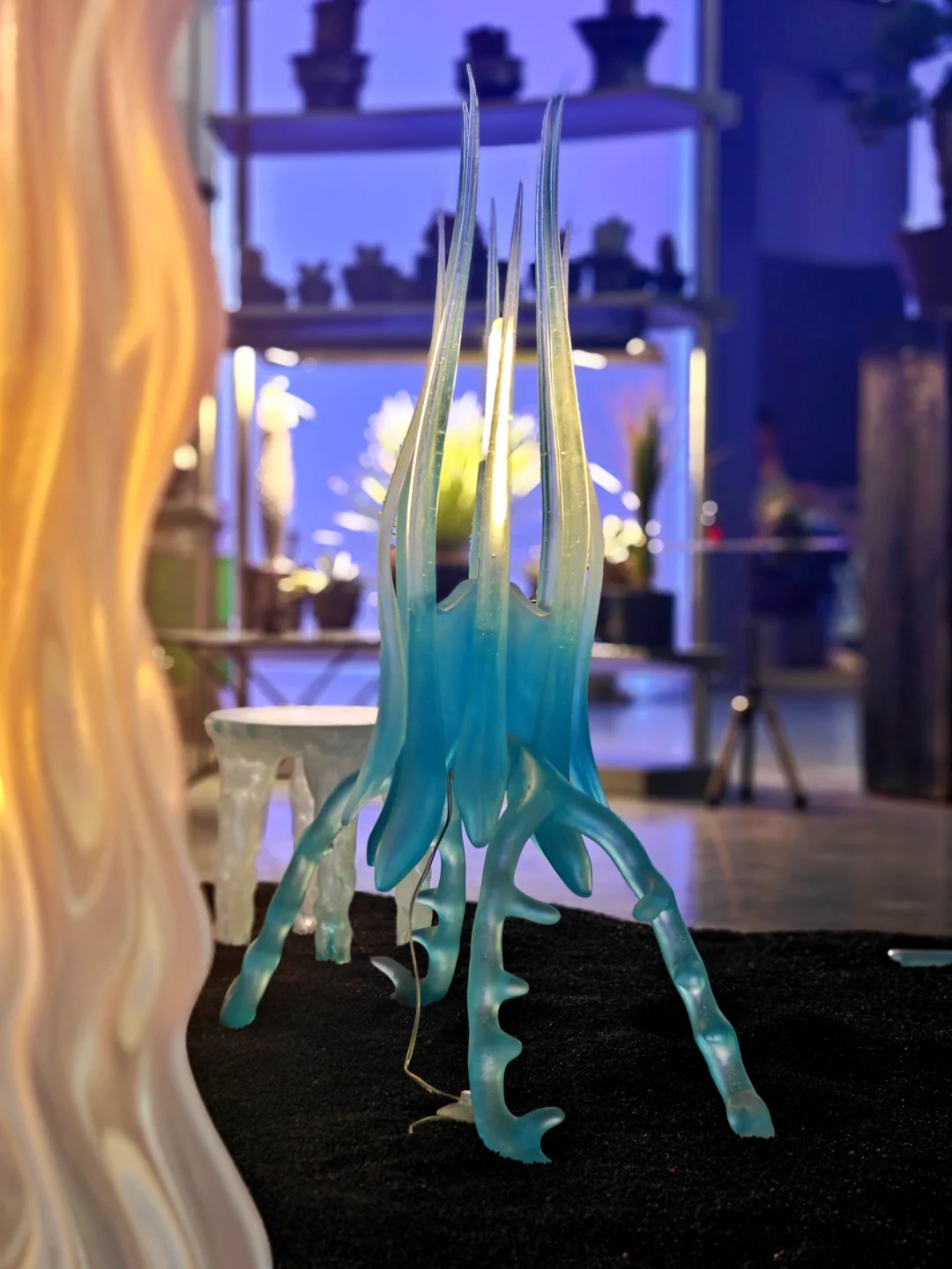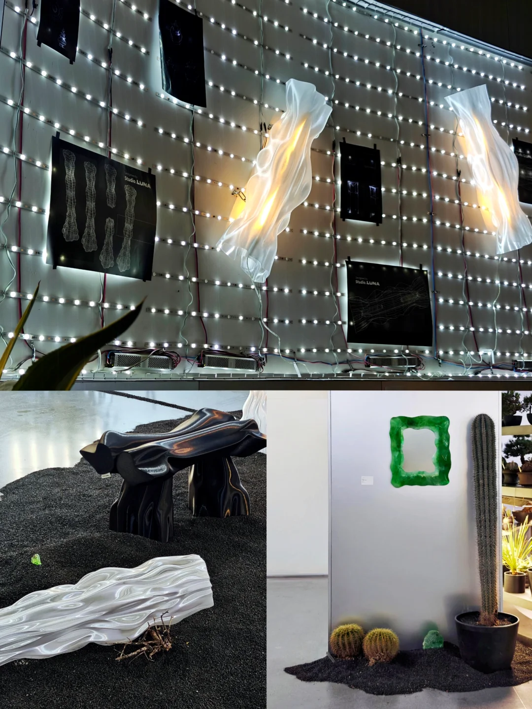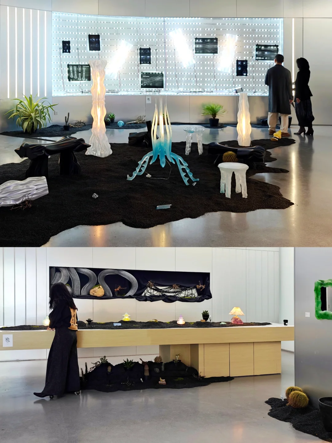 🌵展厅的另一侧是一座“废墟上的未来花园”,由StudioLUNA和灵光实验室Aura Lab的作品与珍稀根块植物Caudex Art的组合,成为展览一大亮点