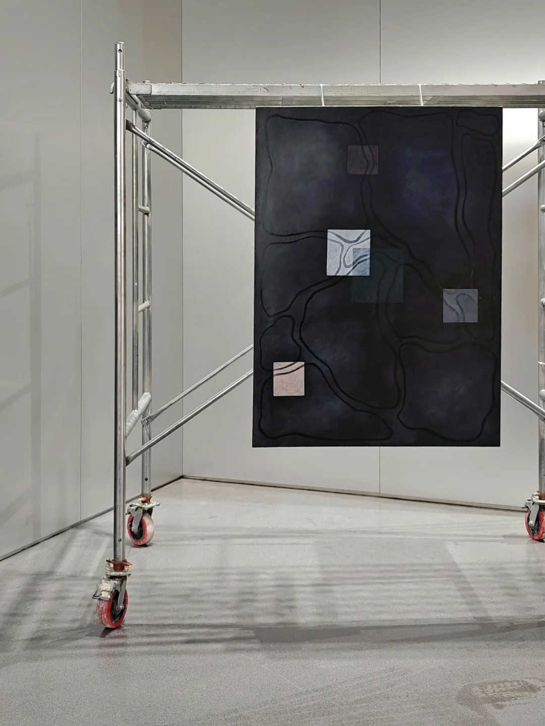 以“抹去”为核心手法,通过颜料与画布的叠加与消散,在不规则的画面中消解实体,引导观众进入虚空之境,思考空间与时间的本质。