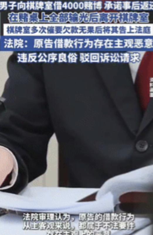 “白嫖成功了!”2025年6月,江苏一男子在棋牌室把钱输光后,向老板借了4000元继续玩,承诺事后返还,不料,男子在牌桌上又输了个精光,随后大摇大摆的离开了棋牌室,老板多次催促男子还钱无果后,将男子告上了法庭,法院这样判了!(文中人物均为化名) 涉事男子张某是当地一家棋牌室的常客,平日里经常到该棋牌室参与棋牌娱乐,出手大方,和棋牌室老板王某相识多年,也因此积累了一定的信任。 事发当天,张某像往常一样来到棋牌室参与棋牌游戏,只是当天的手气远不如以往,随身携带的几千元现金在短短几小时内就全部输光。 按常理来说,输光钱款后大多会选择收手离开,但张某并未就此作罢,在牌友的言语刺激下,想要翻本的想法愈发强烈,于是当场向棋牌室老板王某提出借款要求。 张某向王某提出借款 4000 元,并且当场承诺,这笔钱无论是赢是输,都会在事后及时返还,甚至还表示赢了会多给一部分作为感谢。 王某考虑到张某是多年的老熟客,平日里相处也算融洽,再加上想着张某继续玩牌还能产生台费收益,便没有过多犹豫,也没有签订任何书面的借款凭证,直接将 4000 元现金借给了张某。 拿到 4000 元借款后,张某立刻回到牌桌继续参与游戏,满心想着能借此翻本,弥补之前的损失,可没想到手气依旧糟糕,刚借到的 4000 元没用多久就再次输光。 接连的输钱并没有让张某有任何愧疚,反而在输光 4000 元后,直接起身,大摇大摆地离开了棋牌室,对于向王某借款 4000 元的事情只字不提,仿佛此前的还款承诺从未说过。 王某看着张某离开的背影,起初还以为对方只是暂时心情不好,想着过几天对方就会主动还钱,可左等右等,始终没有等到张某的消息,也没见到对方主动前来还款。 无奈之下,王某开始主动联系张某,催促对方偿还 4000 元借款,可张某要么是找各种理由推脱,要么就是直接不接电话,到最后甚至将王某的联系方式全部拉黑,彻底断绝了和王某的联系。 王某后来好不容易在棋牌室门口碰到张某,本以为能当面要回欠款,没想到张某直接摆出耍赖的态度,明确表示不会偿还这笔钱。 多次催要欠款无果,还遭遇对方的无理耍赖,王某觉得自己的合法权益受到了侵害,手中握着双方的聊天记录和通话录音等相关凭证,自认证据确凿,于是将张某起诉至当地法院,要求张某偿还 4000 元借款,希望能通过法律途径要回自己的钱款。 法院受理此案后,依法开庭进行了审理,庭审过程中,王某详细陈述了事情的经过,并提交了相关凭证,而张某则辩称,这笔 4000 元的借款是自己用于赌博的赌资,赌债本身就不受法律保护,自己没有偿还的义务。 法官结合双方的陈述、提交的证据以及案件的实际情况,进行了详细的审理和核查,最终依法作出判决,驳回了王某的全部诉讼请求,认定张某无需向王某偿还这 4000 元借款。 法院作出该判决的核心依据,是相关的民间借贷法律规定,出借人事先知道或者应当知道借款人借款用于违法犯罪活动仍然提供借款的,该民间借贷合同无效。 本案中,王某作为棋牌室经营者,明知张某借款是为了继续参与赌博,却依然向其提供资金,该行为不仅违背公序良俗,还助长了赌博的违法行为,双方之间的借贷关系自始无效,因此该笔 4000 元的赌债不受法律保护,法院自然不会支持王某的诉讼请求。 这起案件的判决结果公布后,迅速引发了网友的广泛讨论,不少网友纷纷发表自己的看法。 有网友表示 “看似男子耍赖不还钱,实则是老板明知对方赌博还借钱,本身就不占理”。 也有网友称 “欠债还钱的前提是债务合法,赌债本就不受保护,这个判决没毛病”。 还有网友提醒 “无论是谁,都别碰赌博,也别为赌博的人提供资金,不然最后吃亏的是自己”。 这起案件也给所有人提了个醒,赌博本身就是我国法律明令禁止的违法行为,参与赌博不仅会造成个人的财产损失,还可能面临相应的行政处罚。 而对于民间借贷行为,出借人在出借款项前,一定要核实借款人的借款用途,若明知对方将借款用于违法犯罪活动仍提供借款,不仅借贷关系不受法律保护,自身还可能因参与相关违法活动,面临相应的法律责任。 同时也告诫所有人,要远离赌博,不要抱有靠赌博获利的侥幸心理,更不要在赌博过程中进行借贷,避免因一时的贪念和冲动,造成无法挽回的损失。 大家对于这起案件的判决结果有什么看法,也可以在评论区留言讨论。