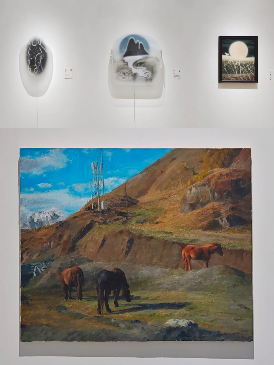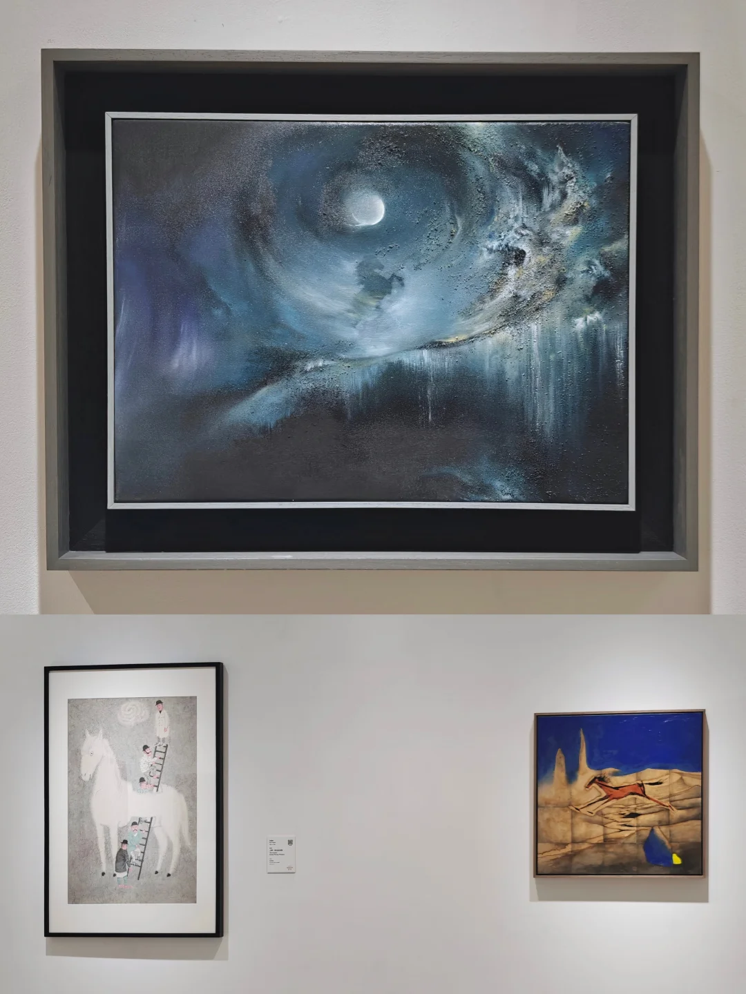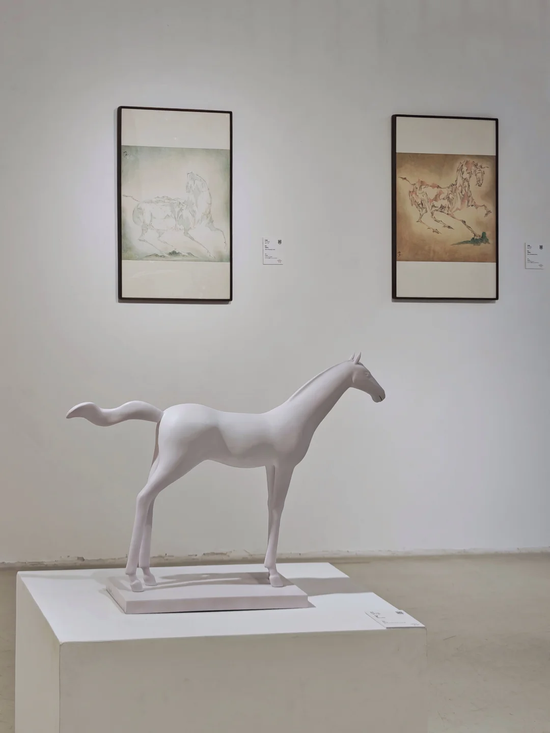 👉作为一个国际画廊,这次展出集合了32位艺术家,国内国外一半一半,作品涵盖绘画、装置、雕塑等多元形式。东方注重其神韵,将马视为文人风骨、精神远行的载体;西方则偏重写实表达,赋予其英雄主义与情感张力,而这场展览让两种审美在「天马行空」的精神内核里达成共鸣。