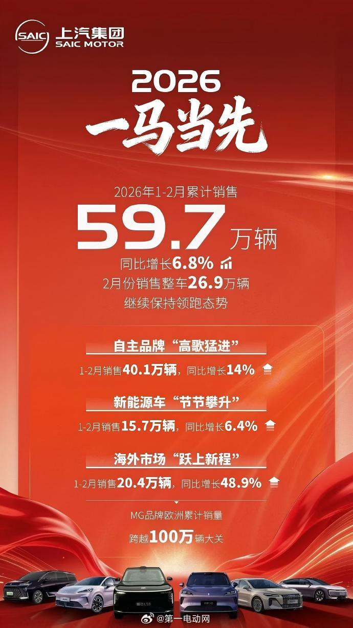 上汽集团 2 月整车销量 269465 辆,新能源汽车 71,340 辆;上汽集