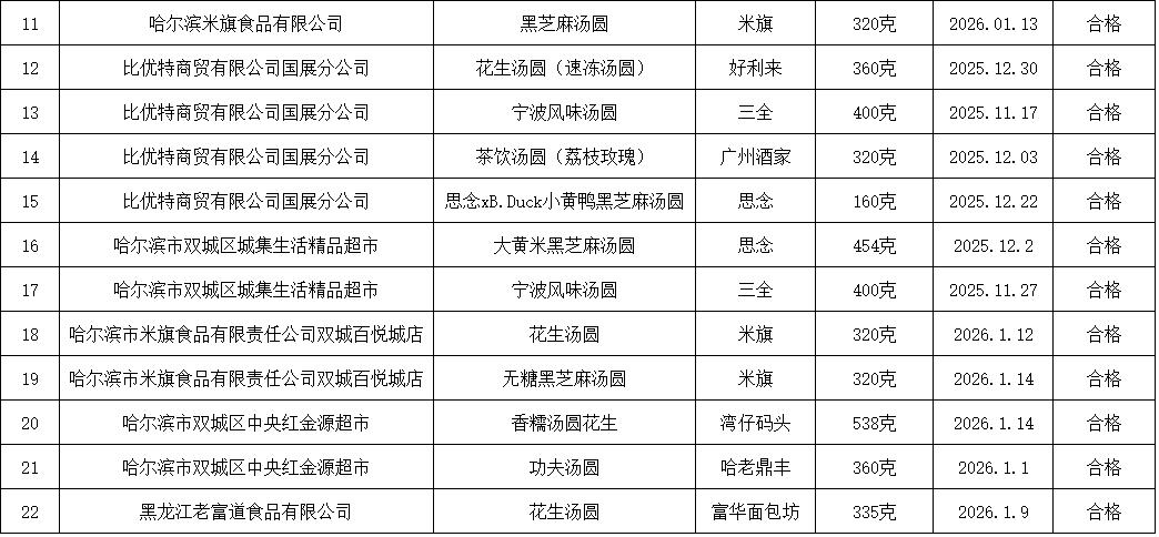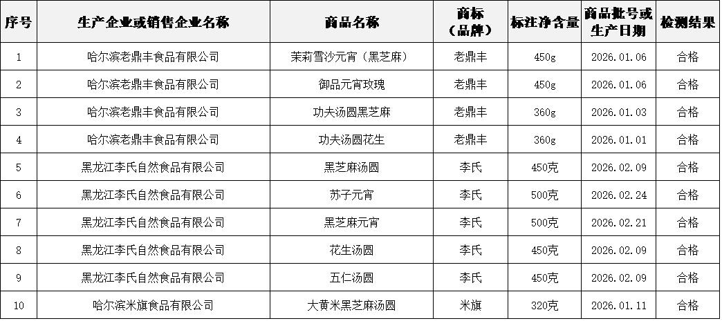 元宵汤圆是否足斤足两?净含量抽检结果来了 元宵至,汤圆香,佳节消费正当时。 为切实守护“舌尖上的计量公平”,让市民买得放心、吃得安心,近日,市市场监管局组织市计量院联合南岗区、平房区、松北区、双城区、宾县、巴彦县市场监管局,开展元宵、汤圆净含量专项抽检,聚焦节日热销节令食品,筑牢民生消费安全防线。 此次专项抽检针对百姓餐桌常见的元宵、汤圆,以“守护民生、规范市场”为核心,重点检查定量包装商品净含量标注规范性、实际净含量与标注值的一致性,直击消费者最关心、最直接的权益痛点。 随着元宵佳节临近,节令食品需求集中攀升,抽样检测任务也进入高峰期。为确保抽检工作高效推进、结果精准,工作人员采取“生产源头+销售环节”双重覆盖模式,深入哈尔滨老鼎丰食品有限公司、黑龙江李氏自然食品有限公司等重点生产企业,比优特、中央红等食品销售企业,精准抽样、严格检测。 本次抽检共完成34个批次 其中生产企业抽检14批次,流通企业抽检20批次。经实验室检测,所有样品核心指标全部合格,合格率达100%。 定量包装商品的净含量, 直接关系到消费者的切身利益, 更是市场计量秩序的“晴雨表”。 此次专项抽检切实规范了 节日食品市场计量秩序, 让公平公正体现在每一份元宵、每一颗汤圆中。 下一步,市市场监管局将持续紧盯节日消费市场,跟踪抽检结果,及时公示检测信息,持续织密民生计量防护网,助力营造公平、透明、安全的节日消费环境,用专业与坚守让广大市民度过一个安心、舒心、暖心的元宵佳节。 2026年元宵、汤圆定量包装商品 净含量计量监督抽样检测结果 供稿:计量处 计量院 编辑:燕爽 责编:王清晨