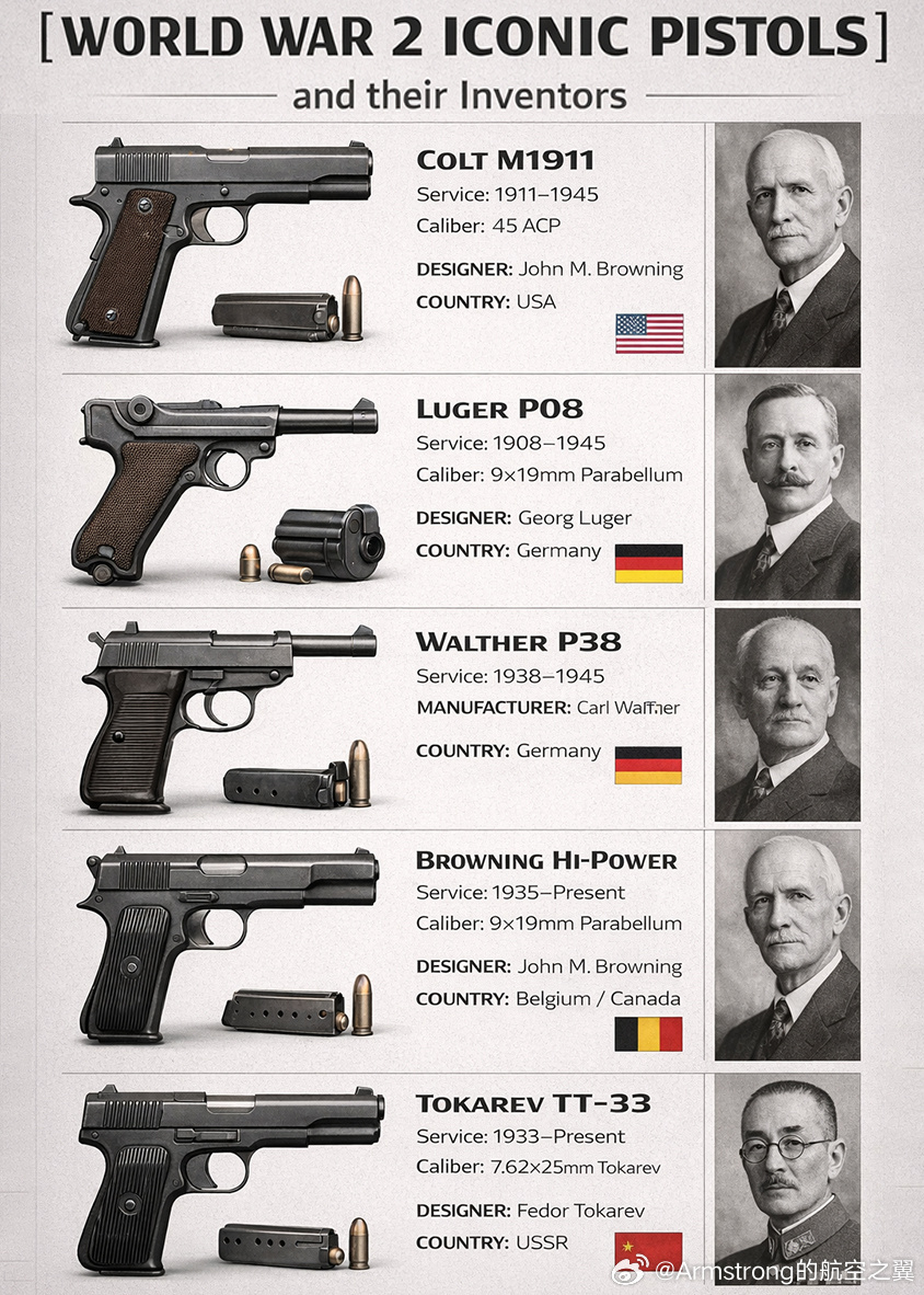 第二次世界大战标志性手枪及其设计师