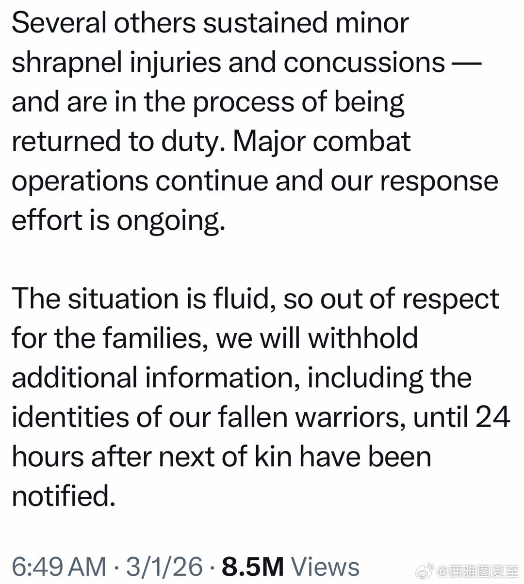 美军官宣:三死、五重伤,还有数名轻伤通知家属二十四小时后,才能宣布身份军事行动继