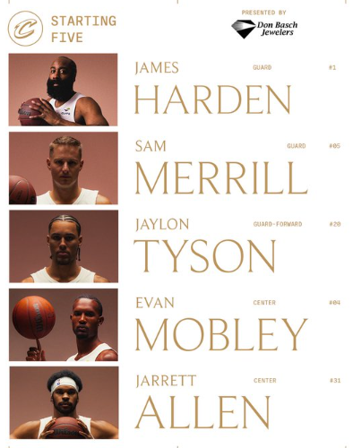 骑士首发出炉:哈登、梅里尔、泰森、莫布利、阿伦。