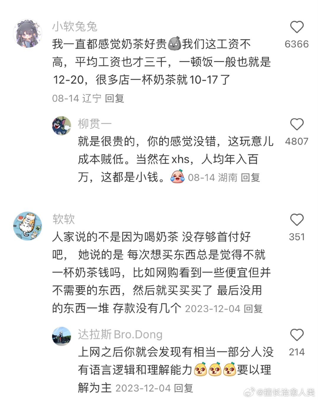 真的很讨厌管二三十块钱叫“一杯奶茶钱’