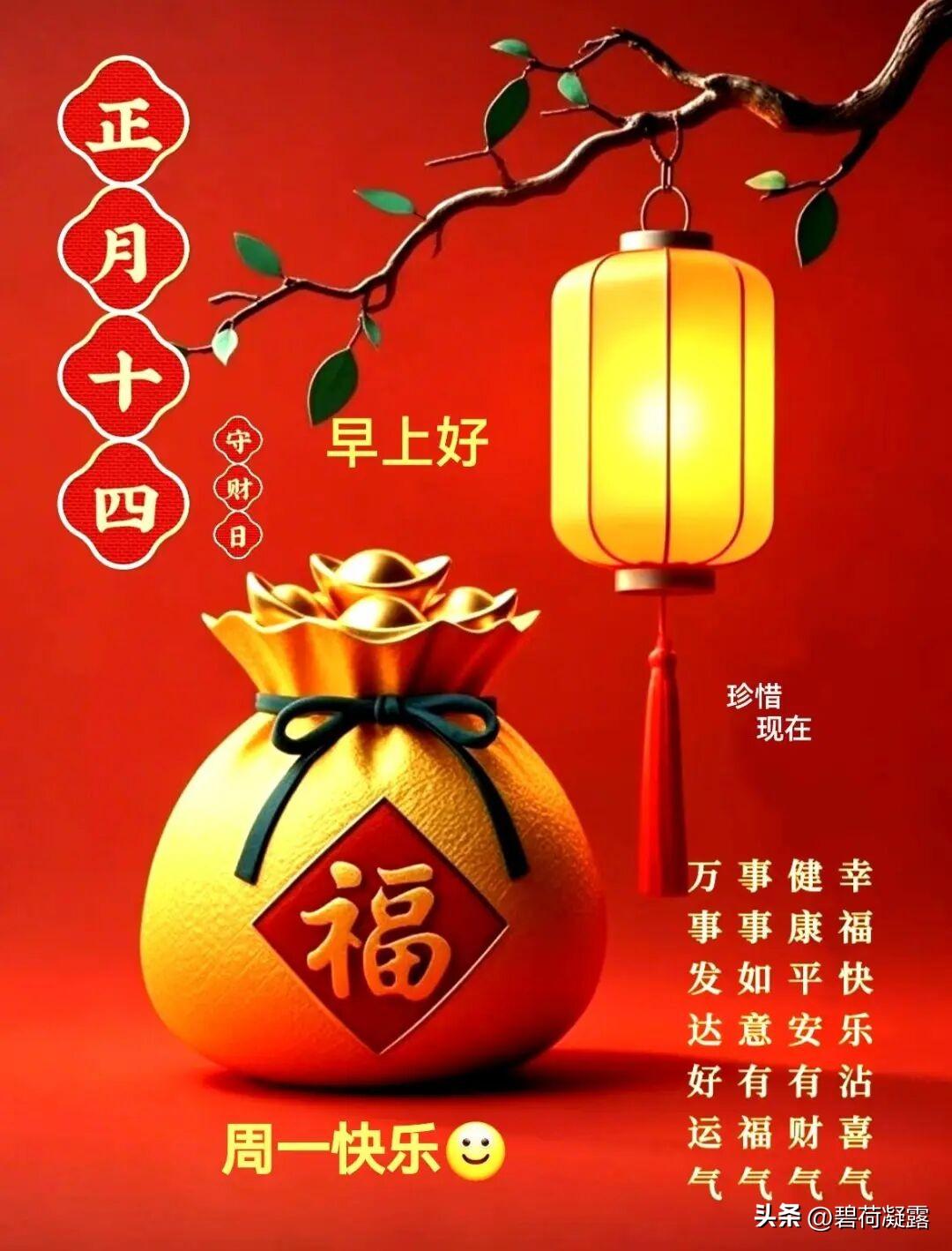 欢欢喜喜贺新岁,热热闹闹庆丰年。2026正月十四,愿您一世平安,十分幸福,百世喜