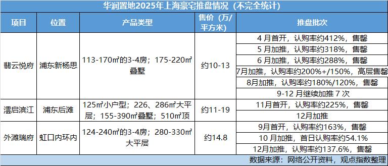 还是以上海为例子,2025年华润置地在上海市场倾注全力,主要推出外滩瑞府、澐启滨江、翡云悦府三个“10万+”项目,试图在高端市场树立绝对标杆。