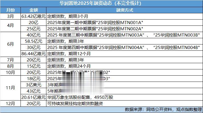 据统计,2025年内,华润置地主要融资动态约15次,涉及金额约482.62亿元。
