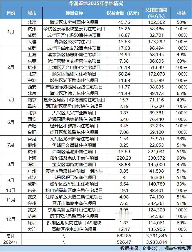 2025年全年统计下来,华润置地新增土地面积更少,在330万平方米出头,但权益拿地金额已超过680亿元,较2024年全年高出近160亿元。