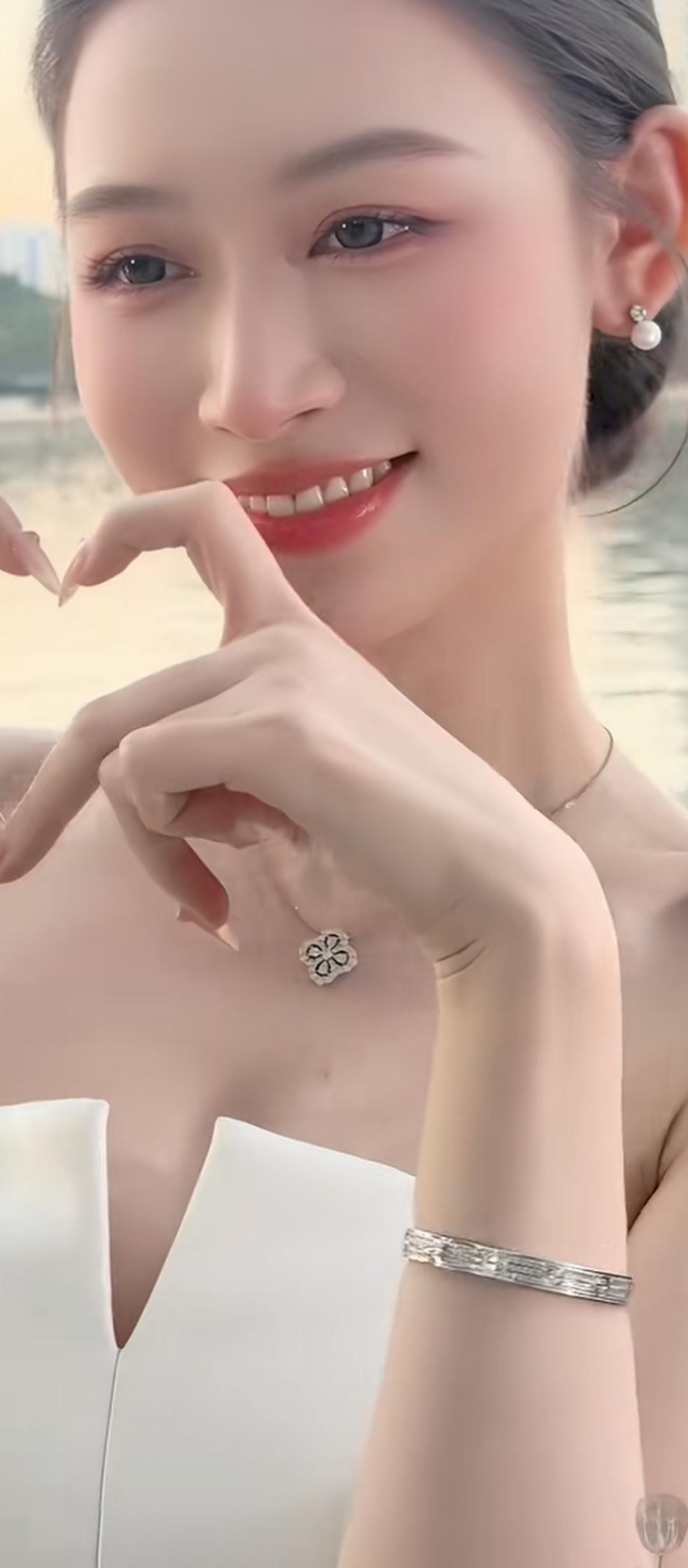 夏日清新穿搭,珍珠手链点缀,自然光下更显优雅。