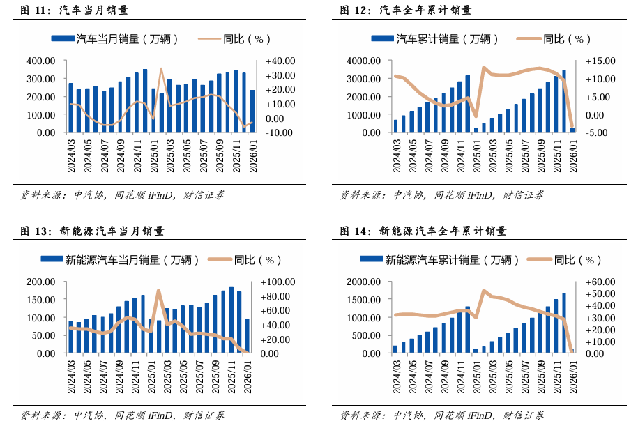 2.3新能源汽车市场:2026年1月中国新能源汽车销量同比+0.10%