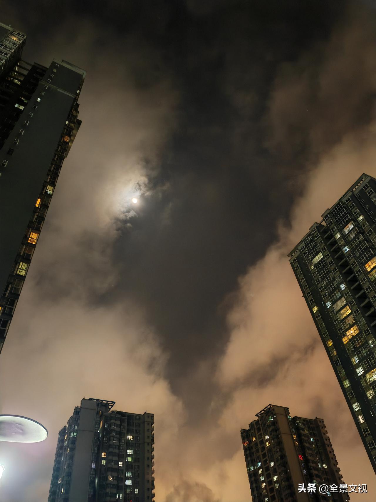 昨晚上没有出门的人们看到这些图片是不是有点遗憾? 雨后的西安,空气异常地清新湿润,天空泛蓝清明。 皎洁的月光,在云彩之间忽暗忽亮。 圆圆的月亮轮廓泛红,如挂在宇宙间的热气球, 高耸入云的住宅楼,如雨后春笋拔地而立。 大斗篷下的乒乓球案,没了往日的喧嚣,楼宇间无常的寂寥。 从丛林般的高楼间仰望,大片大片的白雾,在湛蓝的天空中弥漫。 墨绿的草坪上,居民楼犹坐落于地毯之上。 楼上的万家灯火,彰显着城市的烟火气和繁华。 天地物人构成了美丽的世界生态,若黄公望穿越,必勾绘出一幅别样的《富春山居图》。 晚上出门的友友留意了吗?如果你晚饭后没有出门溜达,那真是一大遗憾。 西安魔幻天气 西安奇幻天气 西安今天很凉快
