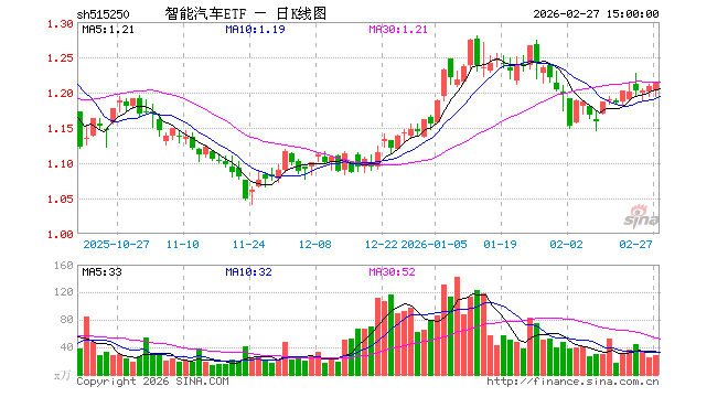 2月27日,智能汽车ETF(515250)涨0.41%,成交额3410.42万元。当日份额增加300.00万份,最新份额为5.84亿份,近20个交易日份额减少6900.00万份。最新资产净值计算值为7.08亿元。