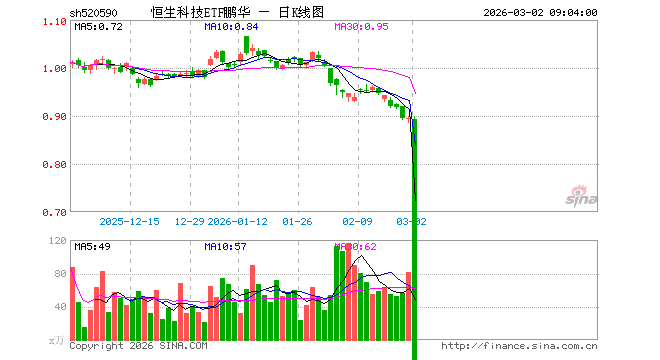 恒生科技ETF鹏华(520590)业绩比较基准为恒生科技指数收益率(经汇率调整后),管理人为鹏华基金管理有限公司,基金经理为李悦、钟成亮,成立(2025-11-17)以来回报为-10.00%,近一个月回报为-11.66%。