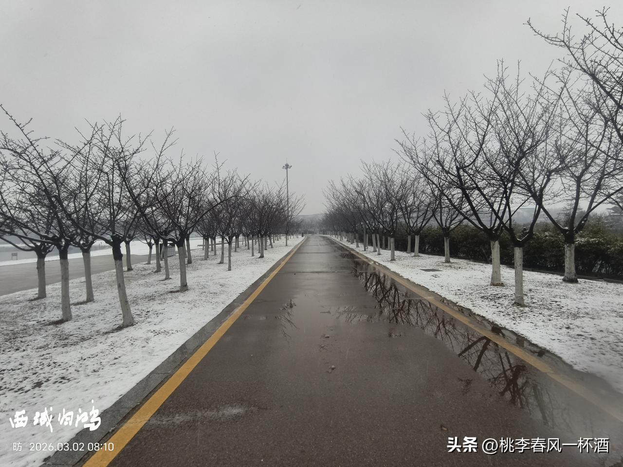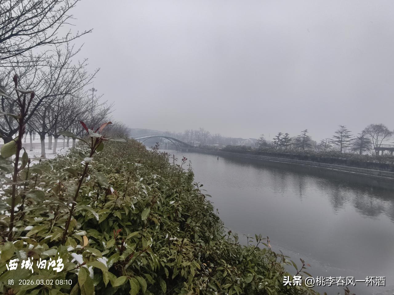 图说东营:3月2日,东营。白雪却嫌春色晚,故穿庭树作飞花。