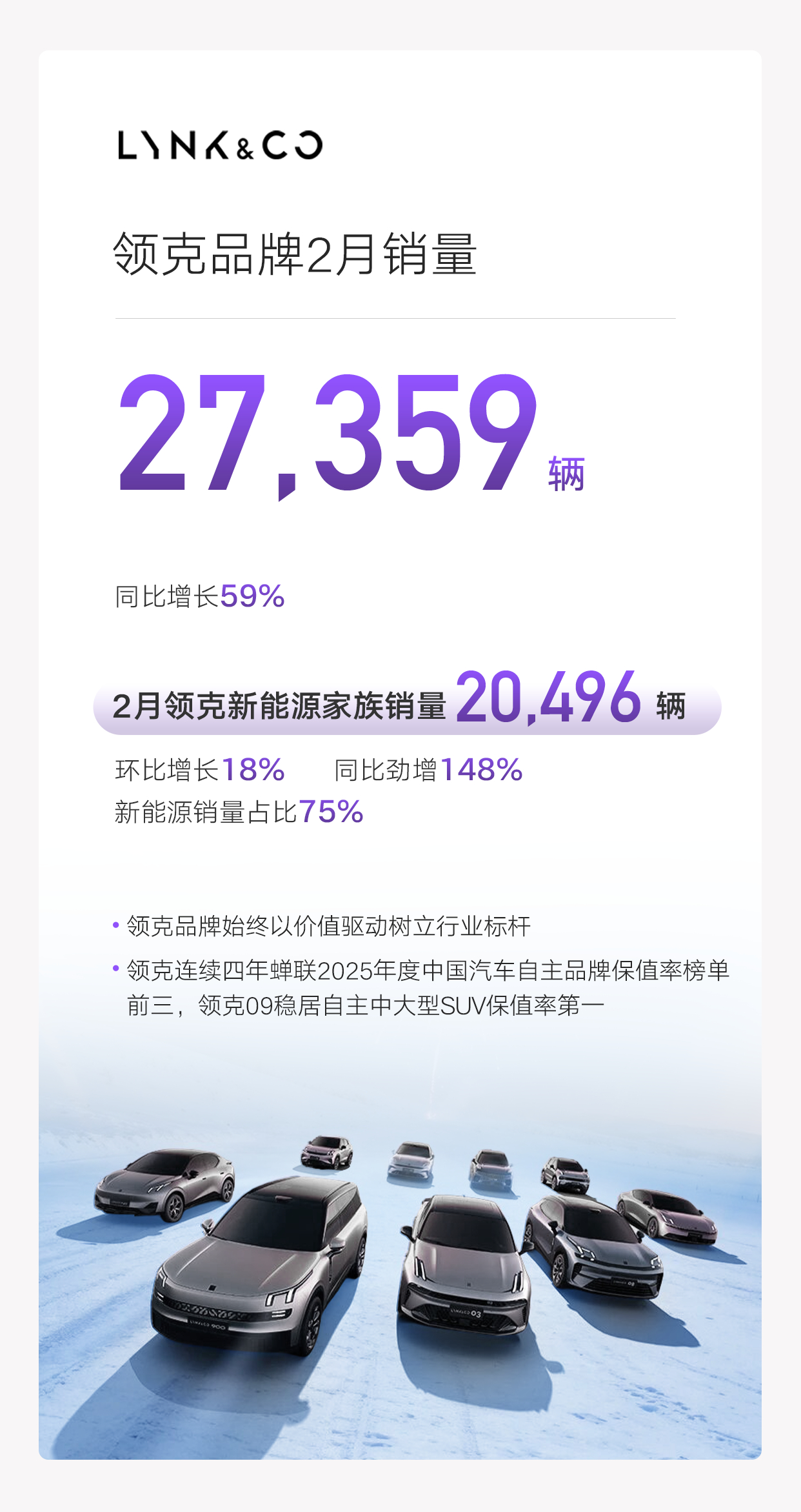淡季不淡,2月吉利又卖了20.61万辆新车3月1日,吉利汽车发布2月销量业绩,2月份实现销量206,160辆,较去年同期增长约1%。作为汽车销售月度最低点,吉利已经锚定了单月销量的底线。前2个月吉利实现销量476,327辆,同比增长1%。