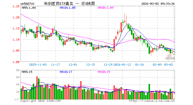 3月2日,科创医药ETF嘉实(588700)开盘跌0.67%,报1.035元。科创医药ETF嘉实(588700)重仓股方面,联影医疗开盘跌1.68%,百济神州跌1.51%,艾力斯跌0.77%,百利天恒跌1.52%,惠泰医疗跌1.73%,君实生物跌2.35%,泽璟制药跌2.44%,华大智造跌1.41%,博瑞医药跌0.90%,荣昌生物跌0.68%。