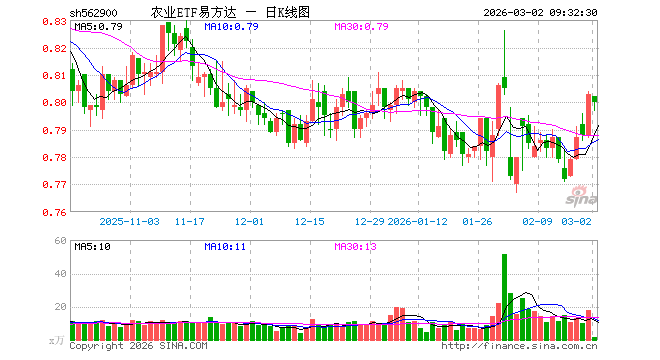 农业ETF易方达(562900)业绩比较基准为中证现代农业主题指数收益率,管理人为易方达基金管理有限公司,基金经理为聂启文,成立(2021-12-02)以来回报为-19.65%,近一个月回报为3.24%。