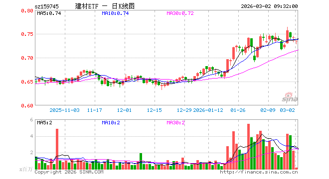 建材ETF(159745)业绩比较基准为中证全指建筑材料指数收益率,管理人为国泰基金管理有限公司,基金经理为黄岳,成立(2021-06-09)以来回报为-26.11%,近一个月回报为3.36%。
