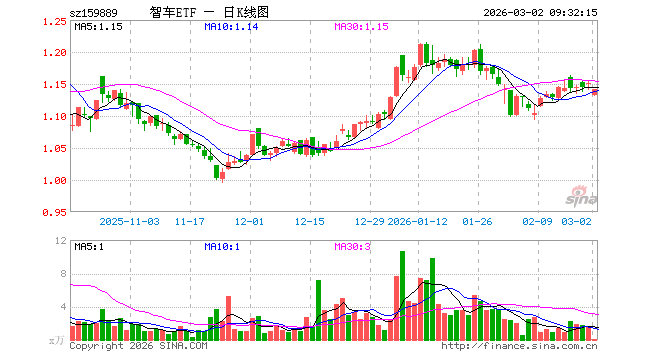 3月2日,智能汽车ETF(159889)开盘跌1.65%,报1.132元。智能汽车ETF(159889)重仓股方面,拓普集团开盘跌2.68%,豪威集团跌2.13%,科大讯飞跌1.90%,比亚迪跌1.48%,长安汽车跌0.63%,赛力斯跌2.51%,芯原股份跌0.92%,立讯精密跌1.81%,北京君正跌2.40%,德赛西威跌3.17%。