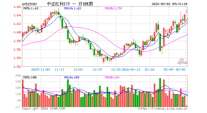 3月2日,中证红利ETF(515080)开盘涨0.24%,报1.645元。中证红利ETF(515080)重仓股方面,中远海控开盘涨3.06%,广汇能源涨8.33%,中谷物流涨1.10%,山煤国际涨1.44%,平煤股份涨1.68%,潞安环能涨2.22%,鄂尔多斯涨0.80%,山西焦煤涨1.50%,陕西煤业涨2.74%,西部矿业涨0.43%。