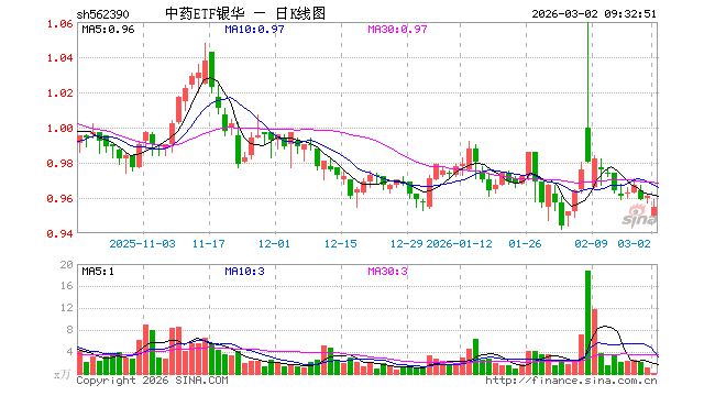 3月2日,中药ETF银华(562390)开盘跌1.14%,报0.950元。中药ETF银华(562390)重仓股方面,云南白药开盘跌0.45%,片仔癀跌0.76%,东阿阿胶跌0.68%,同仁堂跌1.01%,华润三九跌0.28%,吉林敖东跌0.74%,白云山跌0.40%,以岭药业跌1.66%,达仁堂跌0.60%,众生药业跌2.00%。
