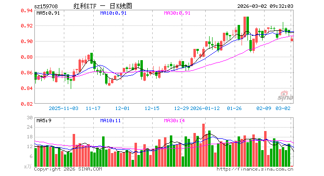 3月2日,红利ETF西部利得(159708)开盘跌1.10%,报0.900元。红利ETF西部利得(159708)重仓股方面,美的集团开盘跌0.81%,五粮液跌1.01%,格力电器跌0.40%,海康威视跌1.37%,迈瑞医疗跌0.54%,徐工机械跌1.39%,泸州老窖跌1.38%,潍柴动力跌1.29%,分众传媒跌0.99%,藏格矿业涨0.37%。
