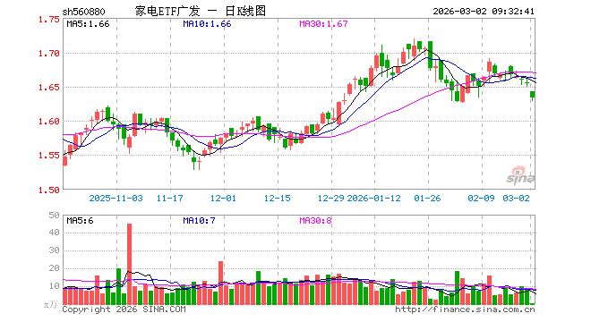 家电ETF广发(560880)业绩比较基准为中证全指家用电器指数收益率,管理人为广发基金管理有限公司,基金经理为陆志明,成立(2022-03-30)以来回报为65.42%,近一个月回报为-1.47%。